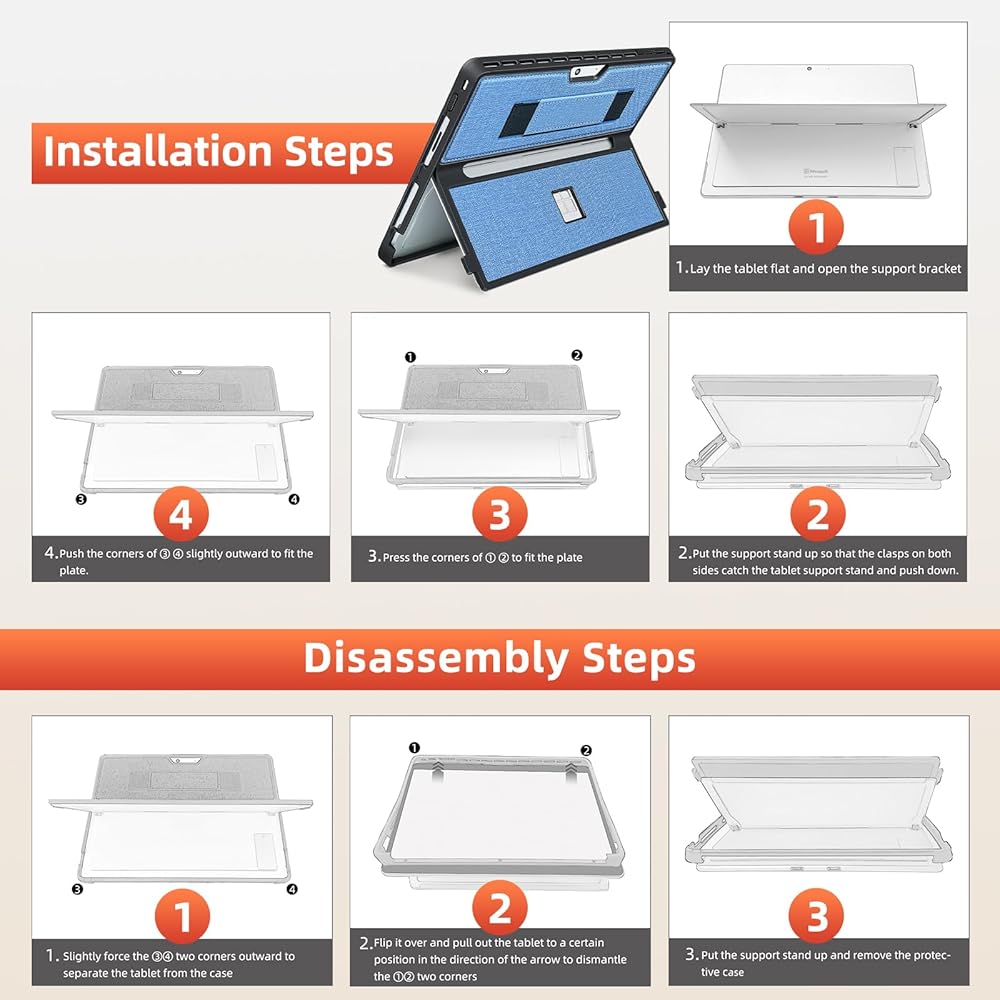 【COMPATIBILITY】Upgraded cover to an all-in-one case so you don't have to worry about the back cover falling off. Designed for Microsoft Surface Pro 11, Surface Pro 10, Surface Pro 9, and Surface Pro 8 13-Inch with precise cutouts. It provides easy access to all controls. Be sure to check the tablet model number before purchasing.
