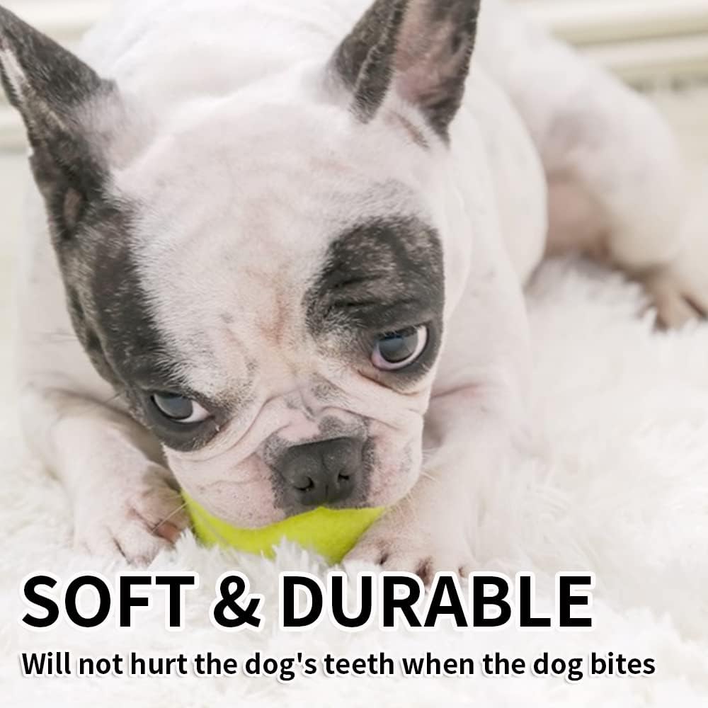 PACKAGE INCLUDES: Includes 12pcs rubber soccer ball and 4pcs tennis ball, 2inch small ball is fit for tiny dog small dog and medium dog.