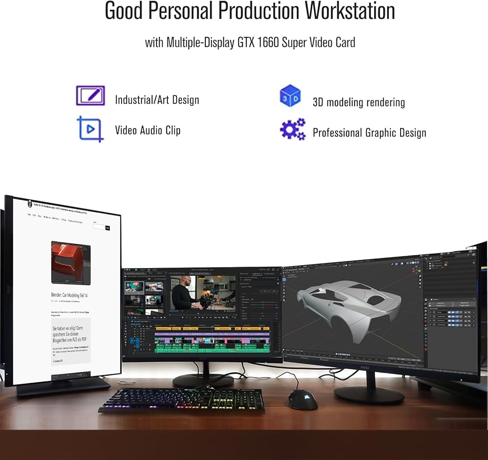 Good GPU for Quad Setup: This SRhonyra GTX 1660Ti video card has 4 ports including 1×HDMI 2.0, 3×DisplayPort 1.4, good for a quad setup while connecting 4 monitors simultaneously, giving you more screen real estate, increasing your productivity for video editing, photoshop or 3D modeling while still navigating web pages on the computer.
