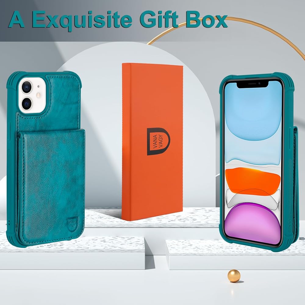 VANAVAGY Compatible for iPhone 11 Wallet Case for Women Men, PU Leather Magnetic Clasp Flip Phone Case Cover with RFID Blocking Credit Card Holder Coin Pocket, Midnight Green