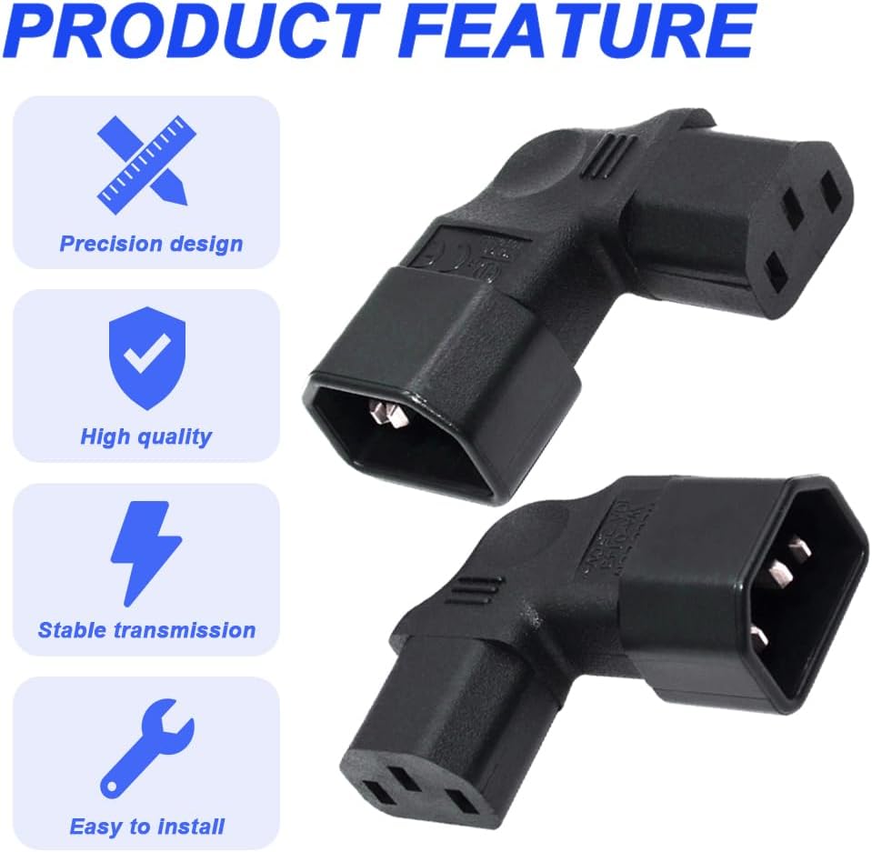 Product Includes: 1 x Left Angle IEC C14 to C13 Power Adapter, 1 x Right Angle IEC C14 to C13 Power Adapter.