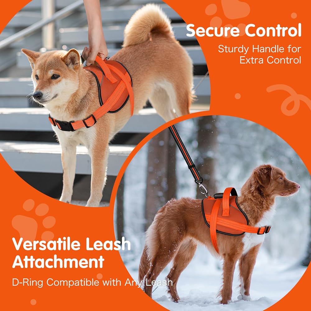 Enhanced Control with Sturdy Nylon Handle: Our glowing dog harness features a durable nylon handle, providing you with extra control during walks, runs, and hikes. This added feature ensures you can keep your dog close and safe in any situation, offering peace of mind and added security with our led dog harness with handle.