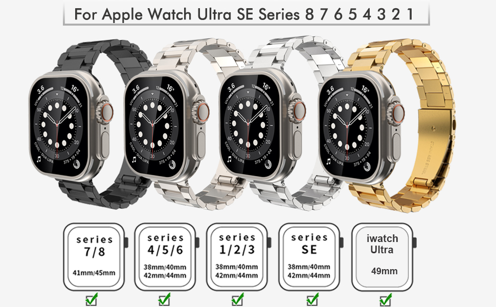 【Premium Stainless Steel Watch Band】Our metal watch bands made of durable stainless steel metal, brushed surface treatment with stylish superior craftsmanship, vacuum plating process,hence it is more wear-resistant and corrosion-resisting than ordinary metal straps, and will never get rusty.The high-quality solid stainless steel band makes the smart watch blend into the business style.