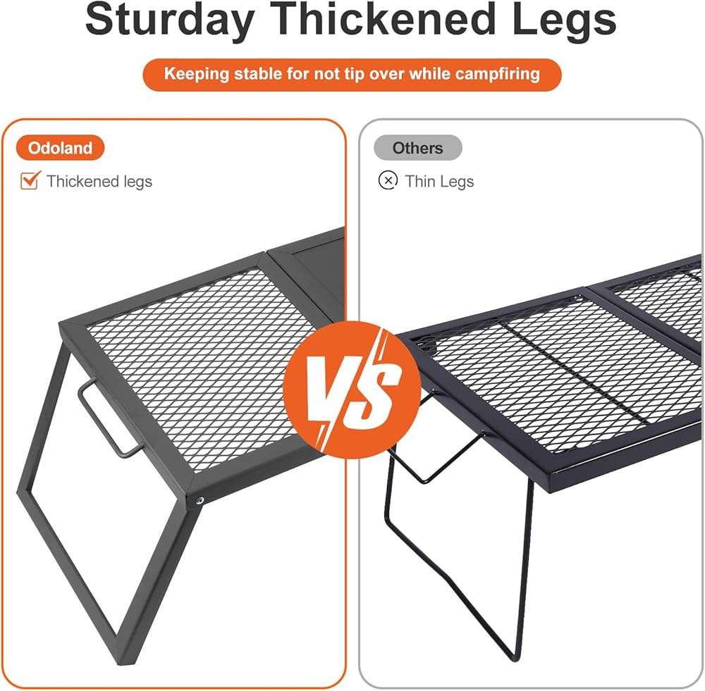 New Version Folding Campfire Grill - For space-saving storage and quick organization, the odoland newly coming camfire grill is designed as folding board and folding legs. Super operation for set up and fold, and with a carrying bag, it is mush easier to take outdoor for bonfire, picnic, BBQ in the courtyard or garden.
