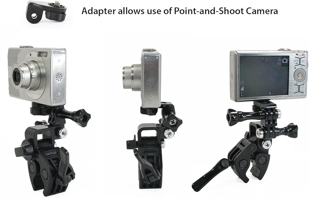 ADJUSTABLE - Compatible with GoPro Cameras and similar accessories. This mount tilts to capture whatever view angle you choose. Attach to gun barrel, fishing pole, ATV handlebars, bike tubing, railing, etc.