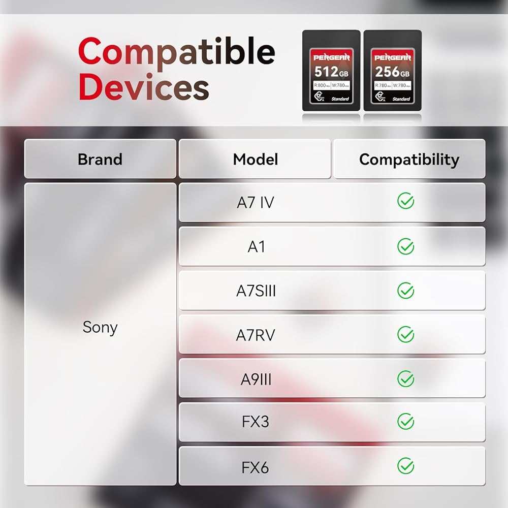 - Pergear 512GB CFexpress Type A Memory Card, Up to 800MB/s Read Speed & 780MB/s Write Speed for 4K 120P, 8K 30P Recording,with Card Reader