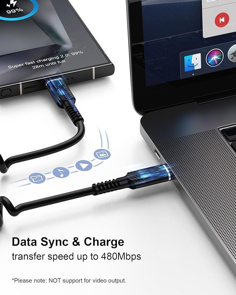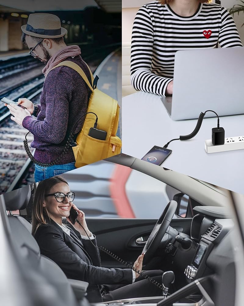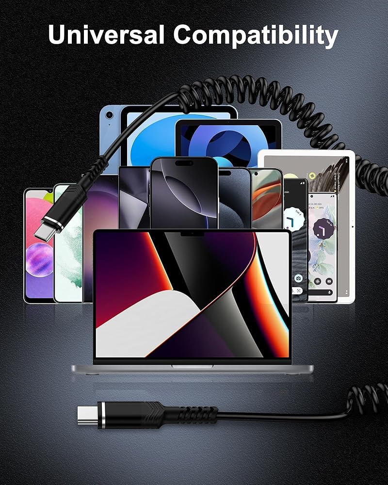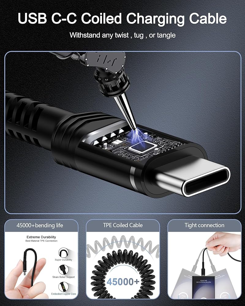The coiled design allows the USB C cable to extend and retract, offering flexibility for various situations. Suitable for all occasions.