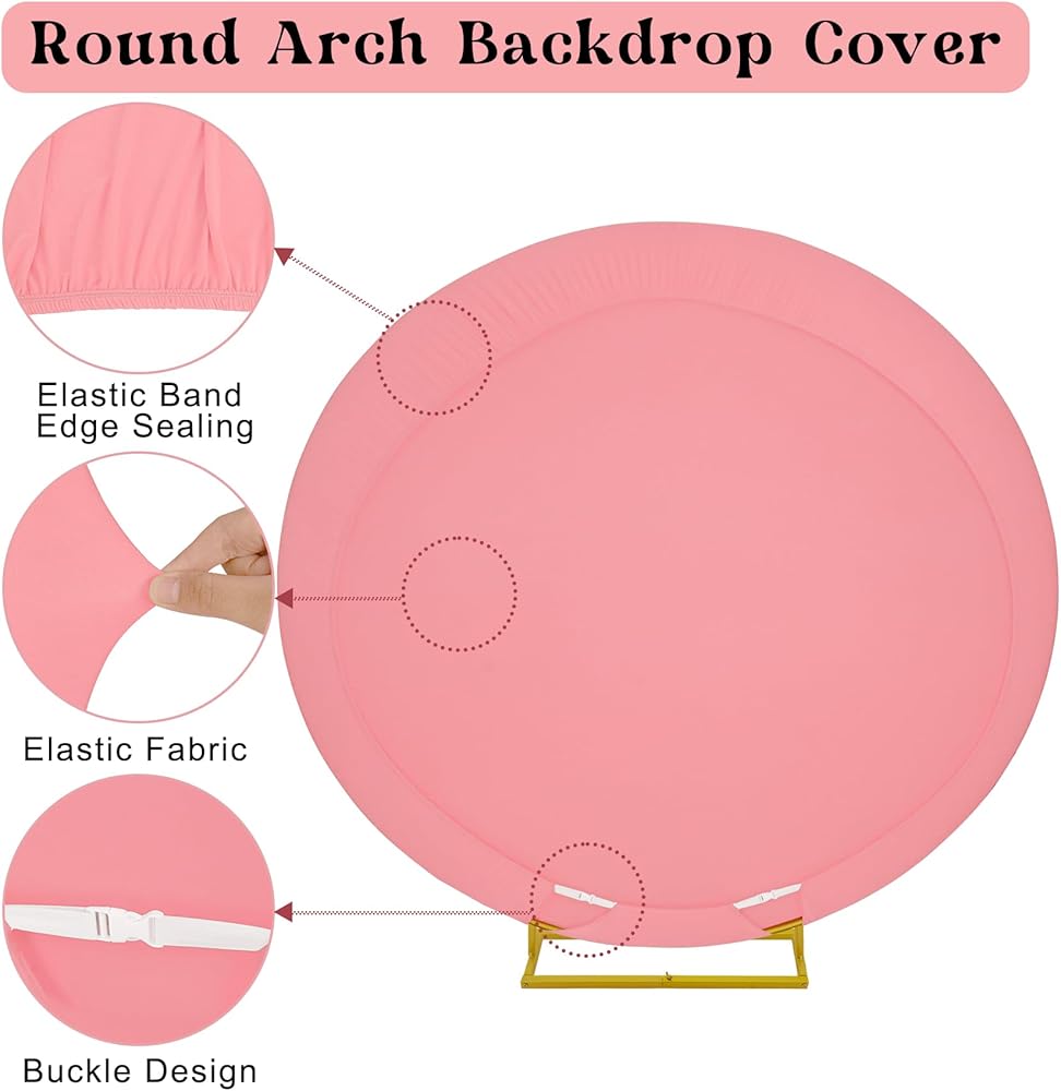 6ft Round Backdrop Stand and Dusty Rose Covers 1 Stable Balloon Arch Stand with Base and 1 Polyster Circle Arch Cover Metal Wedding Arch Backdrop Stand Frame for Party Baby Shower Garden Decoration