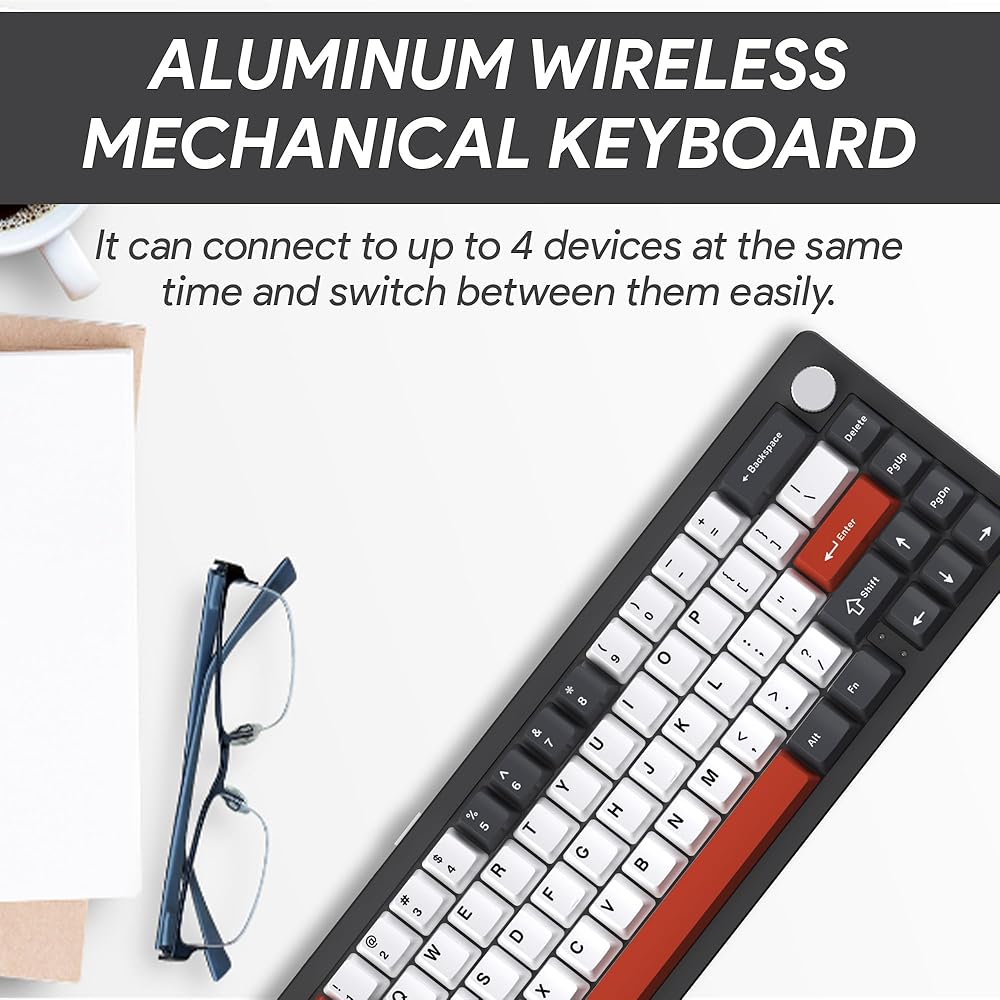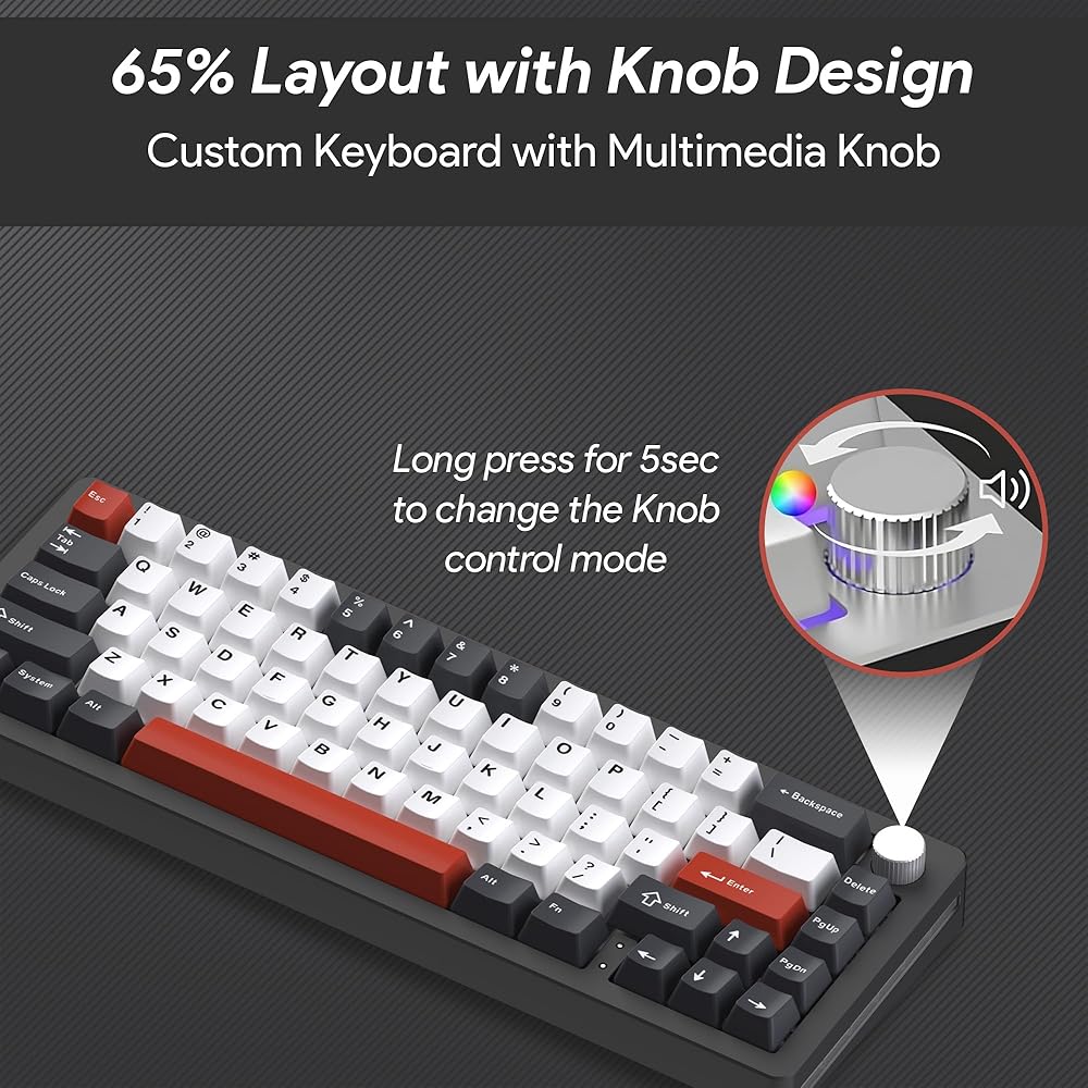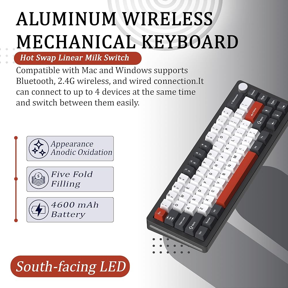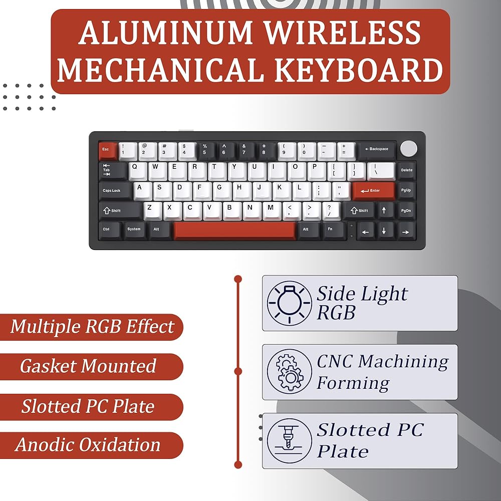 The NABI NB1 65% Wireless Mechanical Gaming Keyboard is a top-tier option for gamers and typists who value both form and function. Constructed with a high-quality CNC aluminum frame, this keyboard not only provides a sleek, premium look but also ensures durability and stability during intense gaming sessions. The anodic oxidation finish adds a touch of elegance, making the NB1 a perfect addition to any setup. With a compact 65% layout, including 66 keys and a multifunctional knob, this keyboard is designed to save space while offering all the essential functions you need for gaming and productivity. Versatility is at the core of the NABI NB1, offering triple connectivity options: Wired Type-C, Bluetooth, and 2.4G wireless. Whether you prefer the reliability of a wired connection or the freedom of wireless, the NB1 has you covered. The south-facing RGB and side lights create a captivating visual experience, with customizable lighting effects that can be tailored to match your style. Available in four stunning color choices—White, Black, Pink, and Blue—you can choose the one that best complements your setup. Performance is key with the NABI NB1, equipped with hot-swappable Nabi Milk Linear switches for a smooth typing experience. These switches can be easily replaced without soldering, giving you the flexibility to customize your keyboard to your preference. The keyboard also features a 4600mAh battery, ensuring long-lasting performance, whether you're gaming, working, or browsing. Additionally, the gasket-mounted structure and slotted PC plate offer enhanced typing comfort and sound dampening, making the NABI NB1 not just a keyboard, but an essential tool for your gaming arsenal.