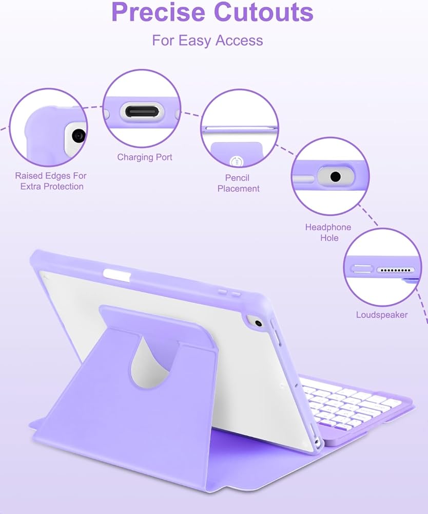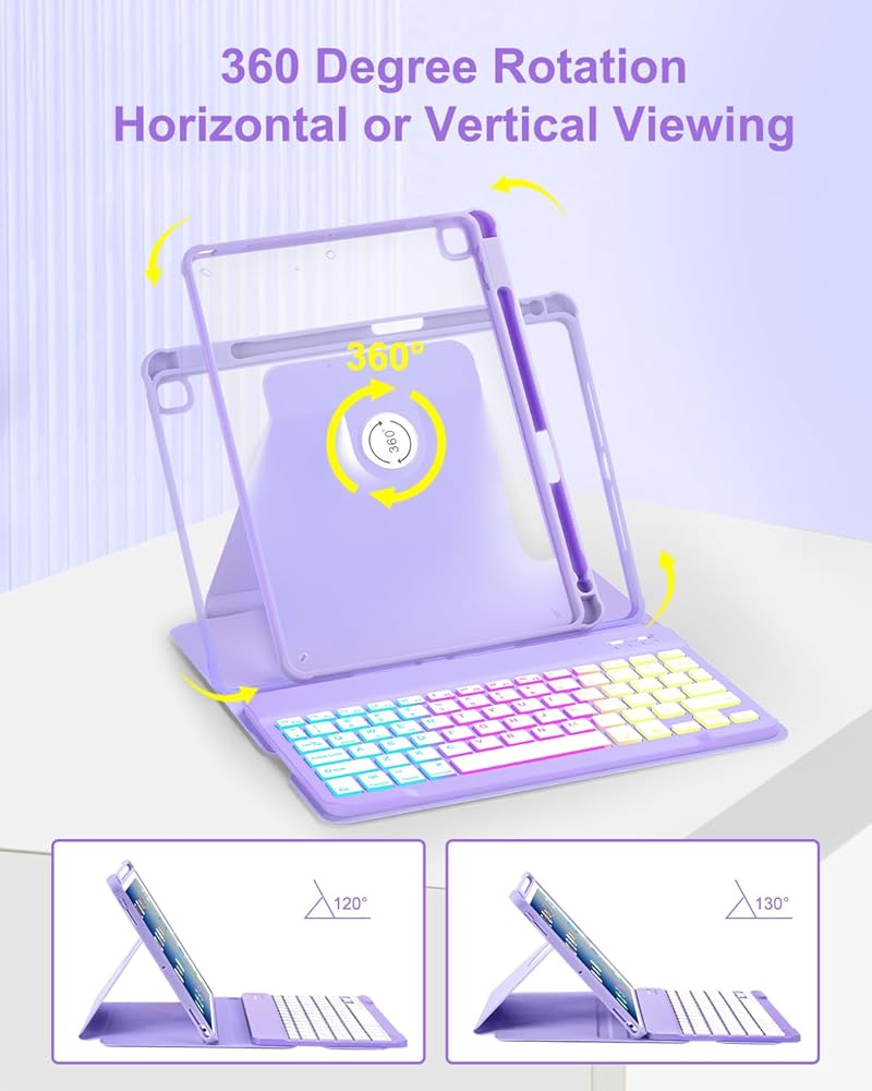 【Strong Magnetic Adsorption, 360-Degree Rotatable】This protective case is made of premium PU leather and has 14 built-in powerful magnets, which can firmly absorb the keyboard to prevent the keyboard from moving and falling.The back cover can be rotated 360 degrees, allowing the tablet to be stand horizontally or vertically, allowing you to watch videos or read at a comfortable angle