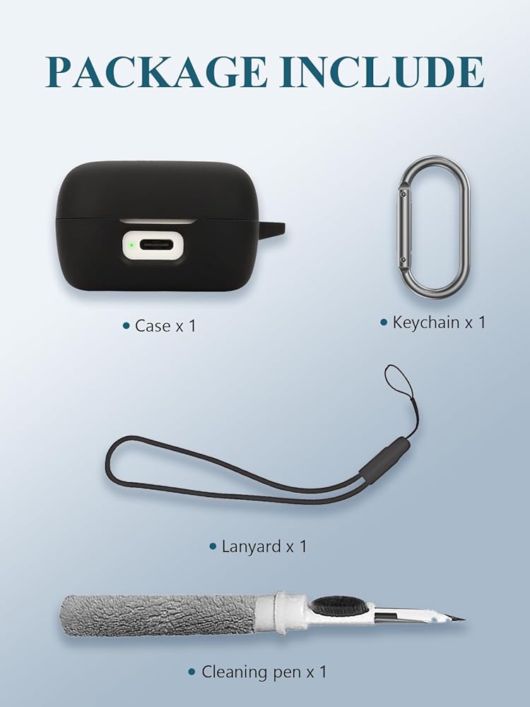 Warm Tips: Package include 1 x Silicone Case, 1 x Keychain/Carabiner,1 x Cleaning pen,1 x Lanyard(NOT INCLUDE EARBUDS). We take care of all quality-related issues with a REPLACEMENT, so if you have any problem, please contact us without hesitation.