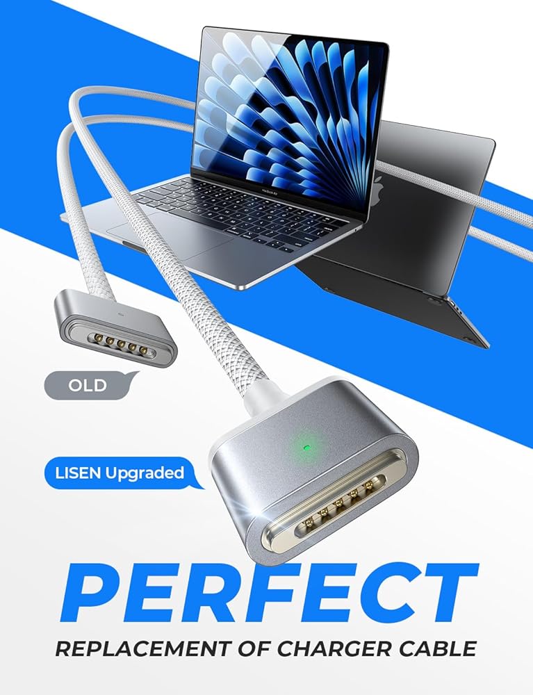 LISEN 140W USB C to Magnetic Cable Safe 3 for MacBook Charger, Nylon Braided 6.6FT Fit for MacBook Air 2024(M3), 2023/2022(M2),MacBook Pro 2023(M3,M2,14-16 inch),MacBook Pro Charger Cord (M2)