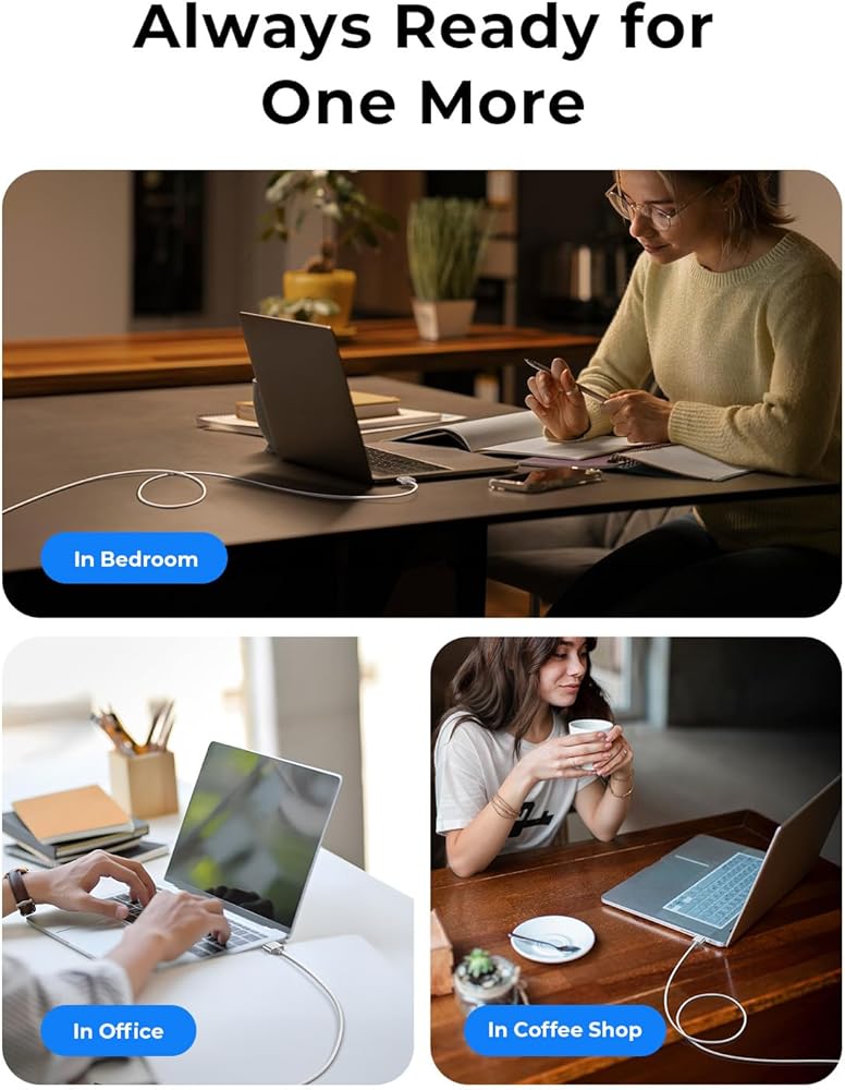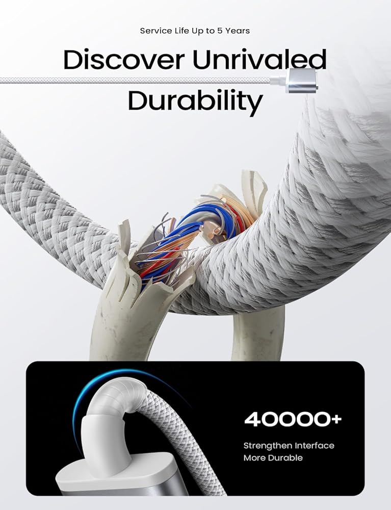 140W PD SUPER FAST CHARGING:Ensuring that your MacBook charges quickly and efficiently.Whether you're working on a project or just browsing the web, this cable ensures that you'll always have the power you need. Charge up to 50 percent in just 30 minutes when using a qualified power adapter. 96W or 140W USB-C Power Adapter is recommended for fast charging