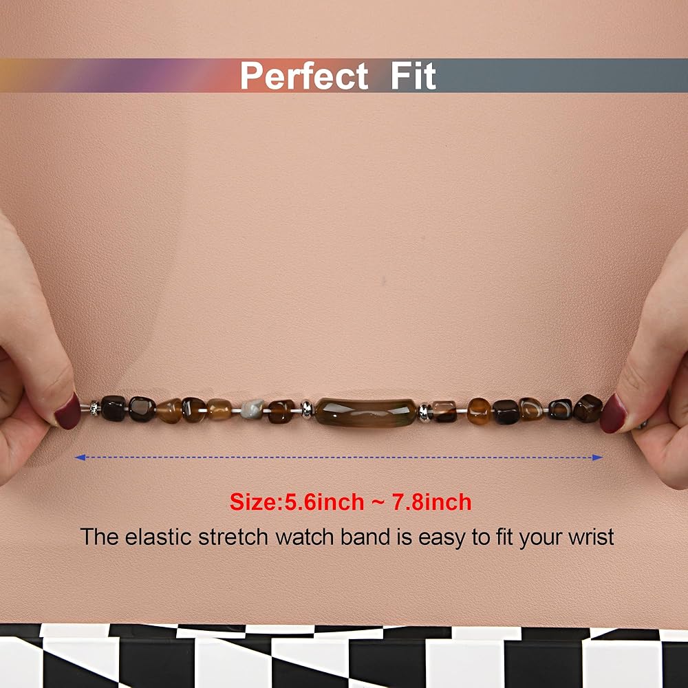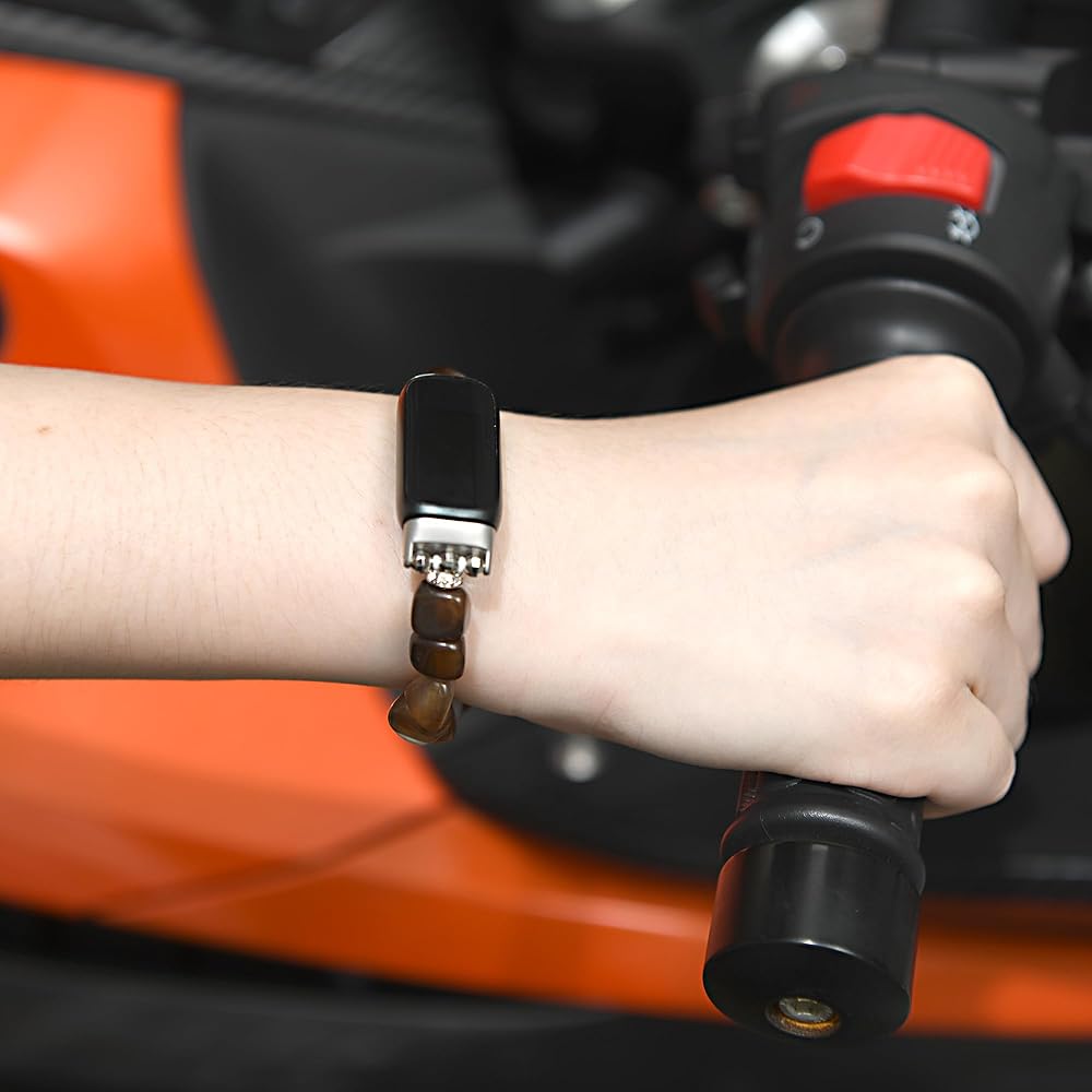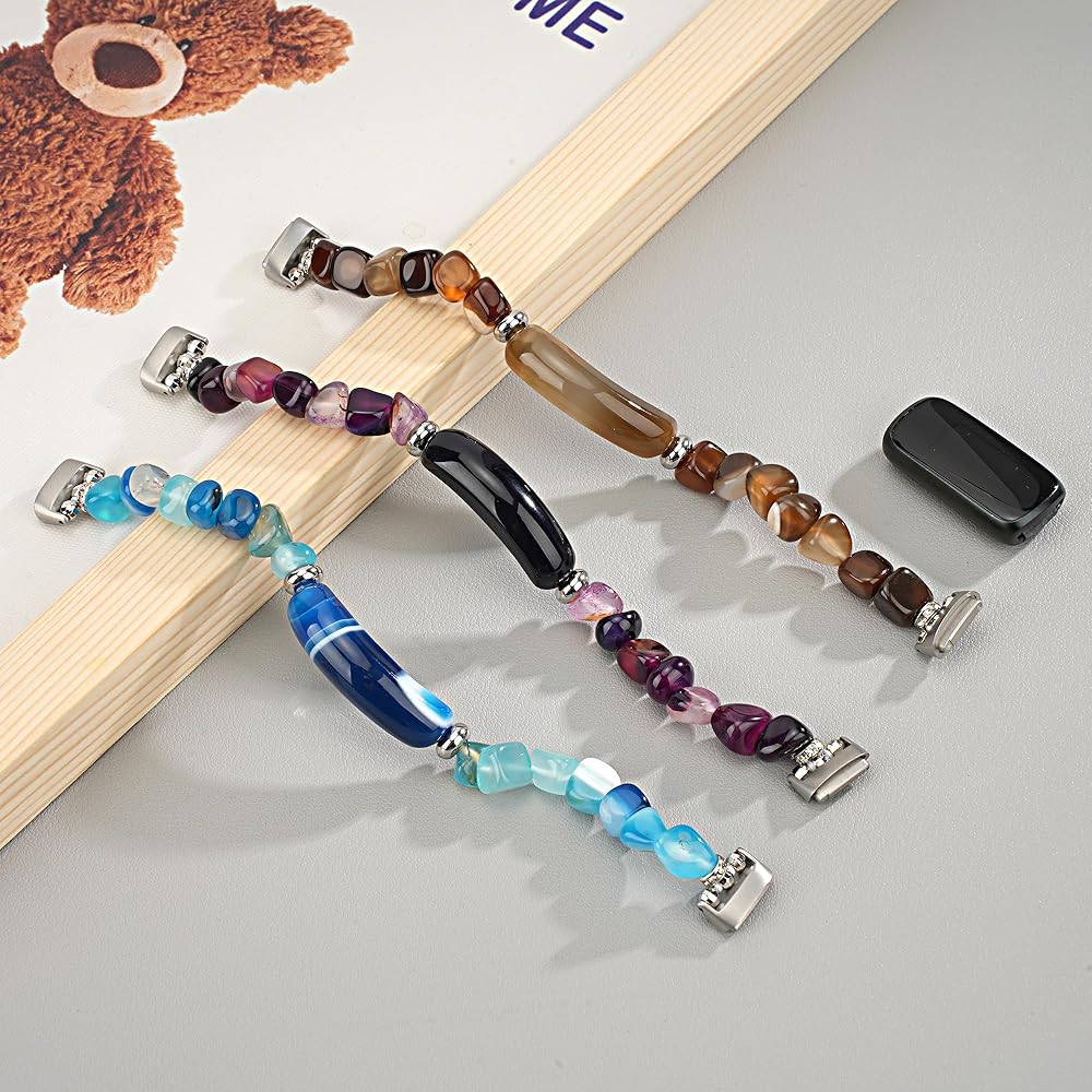【Handcrafted Polished Beads Bracelet for fitbit Luxe】 Strand with polished 8mm crystal beads and oblong stone, each bracelet is various in color, texture and size.