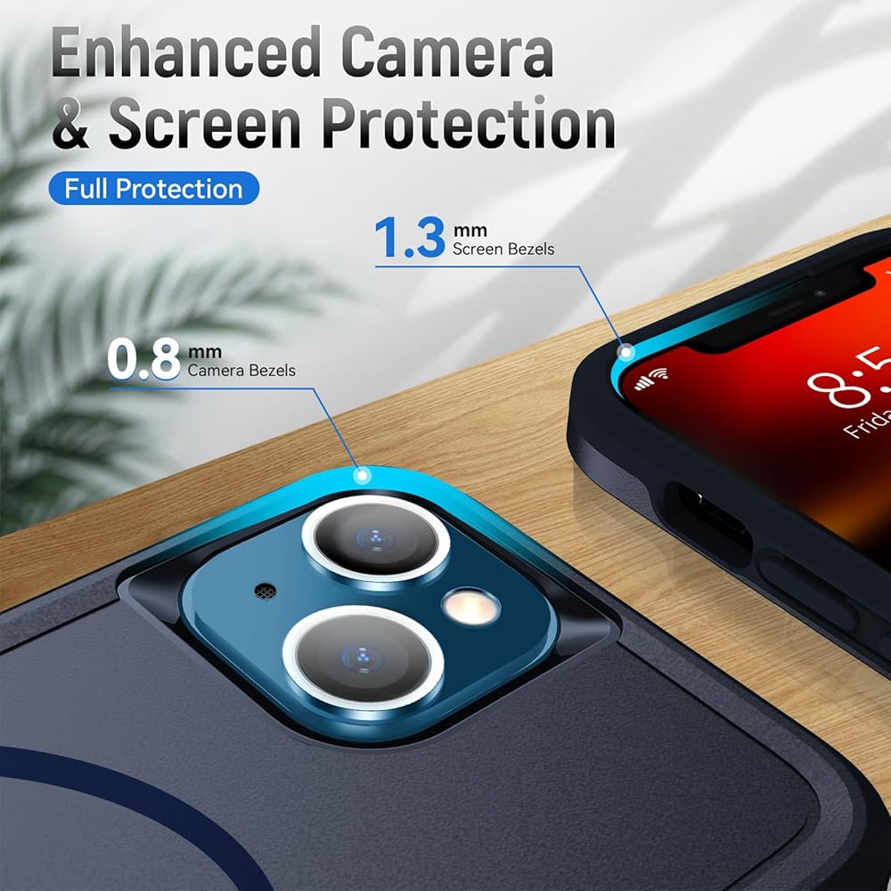 [Screen & Camera Safeguard] This strong magnetic case provides 1.3 mm camera lips and 0.8 mm screen lips, which help prevent your iPhone 13 from scratch and broken. The frosted tree-grain feel on the back provides excellent grip for one-handed operation.