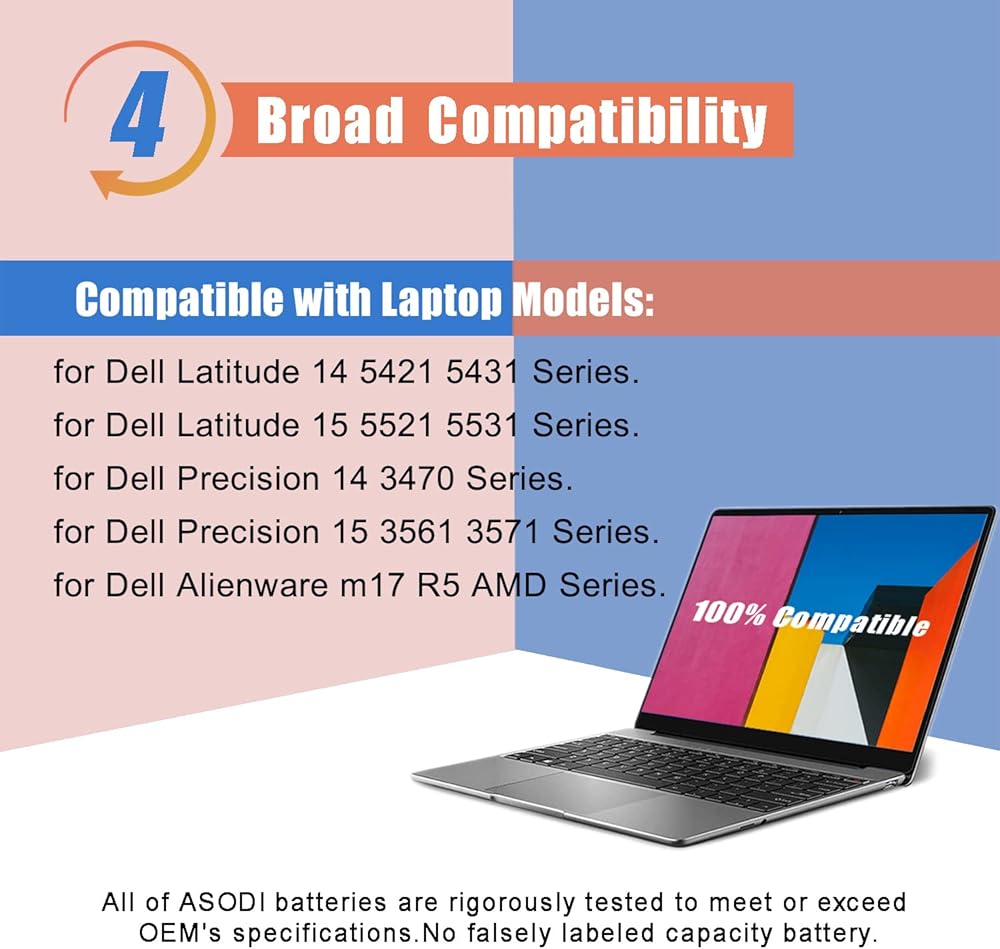 <1>Model: 4XKN5 . Voltage: 11.1V . Capacity: 65Wh/6000mAh 6-Cell . Color: Black . 100% brand new. (Please open the back case of your laptop and check out the exact part number of your laptop's original battery Before placing your order)