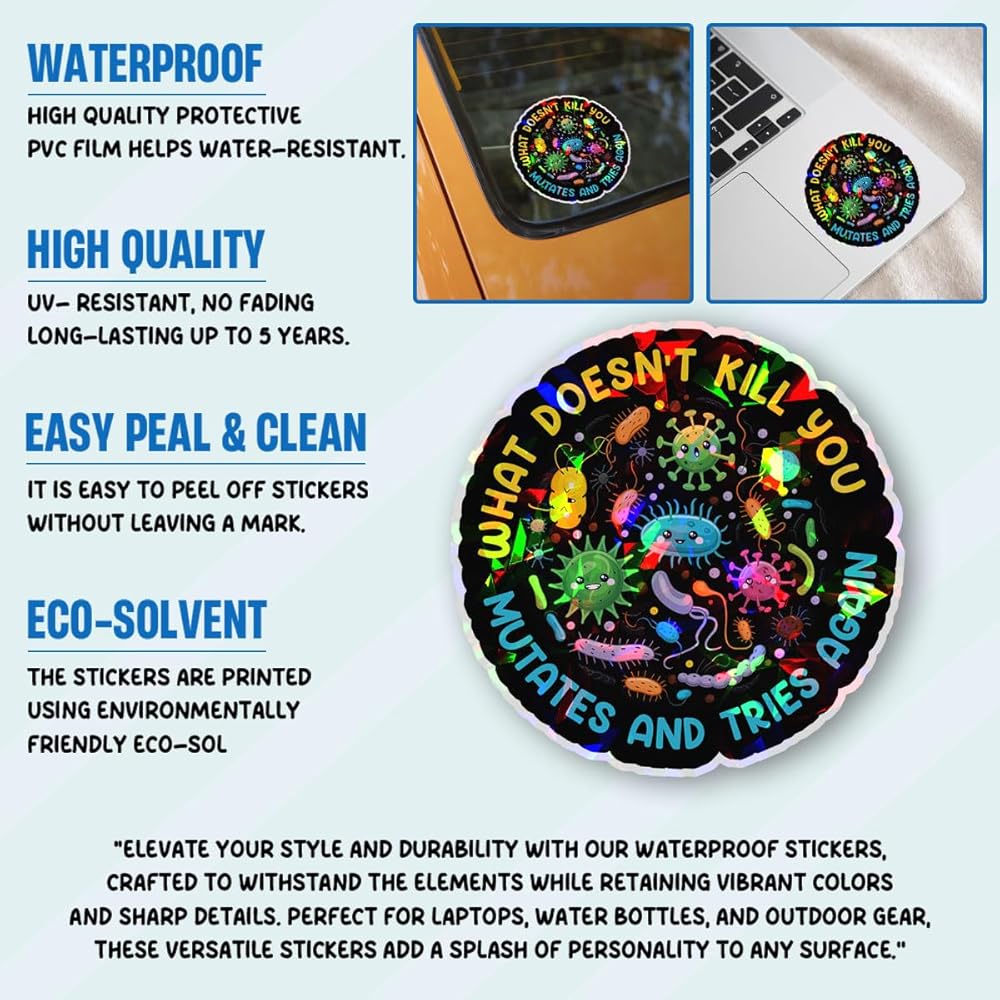 3 Pcs What Doesn't Kill You Mutates and Tries Again Sticker, What Doesn't Kill You Mutates and Tries Again Public Health Stickers Gifts Microbiology Psychology Stickers for Laptop Phone Car Helmet 3" Search us with: What Doesn't Kill You Mutates and Tries Again Sticker, What Doesn't Kill You Mutates and Tries Again, Public Health Stickers, psychology laptop sticker, computer science stickers, microbiology stickers, public health stickers, public health gifts