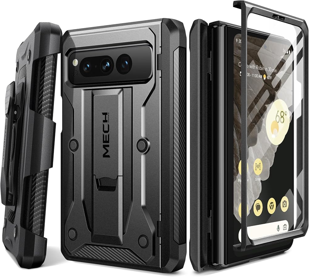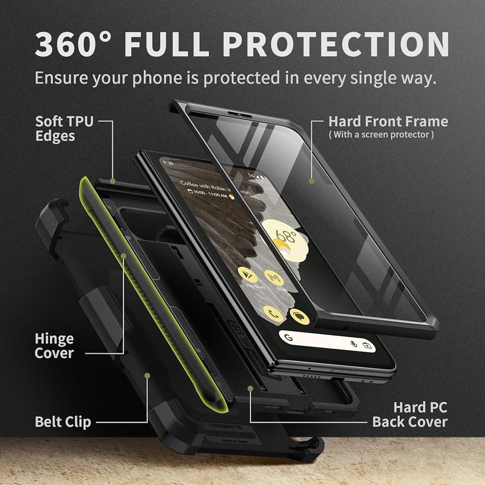 Tongate for Google Pixel Fold Case(2023), [Bulit-in Screen Protector] [Hinge Protection] Military Grade Dual Layer Shockproof Rugged Phone Case with Kickstand & Belt Clip for Pixel Fold 5G, Black