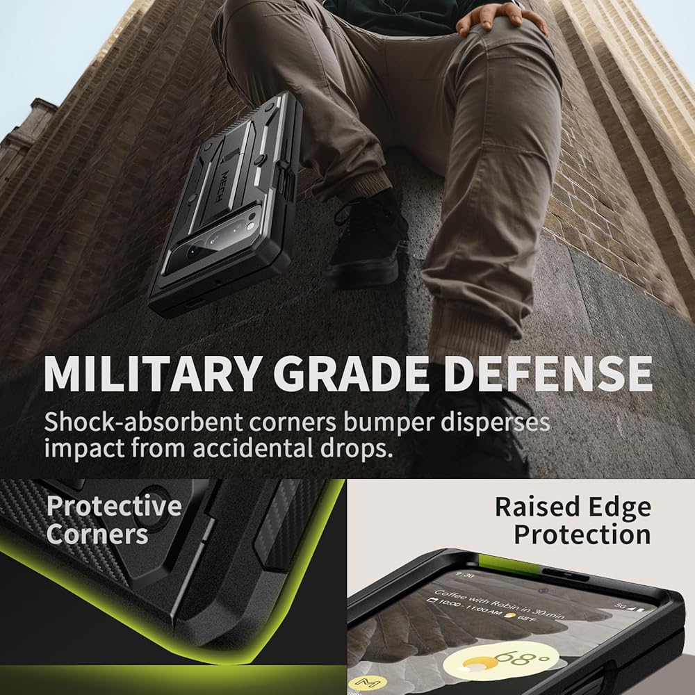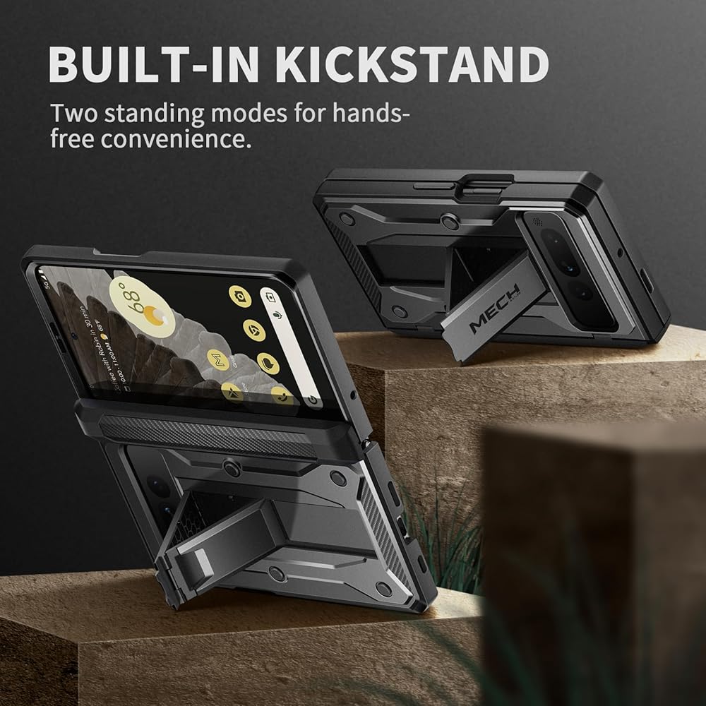 [Hidden Kickstand & Wireless Charging] - The Pixel Fold case equipped with a sturdy and foldable stand, it allows for hands-free viewing. The kickstand is not only flexible and strong but also serves as a grip holder for added comfort without adding extra bulk. With its hidden kickstand design, you can still enjoy the convenience of wireless charging without having to remove the heavy-duty case from your Pixel Fold phone.