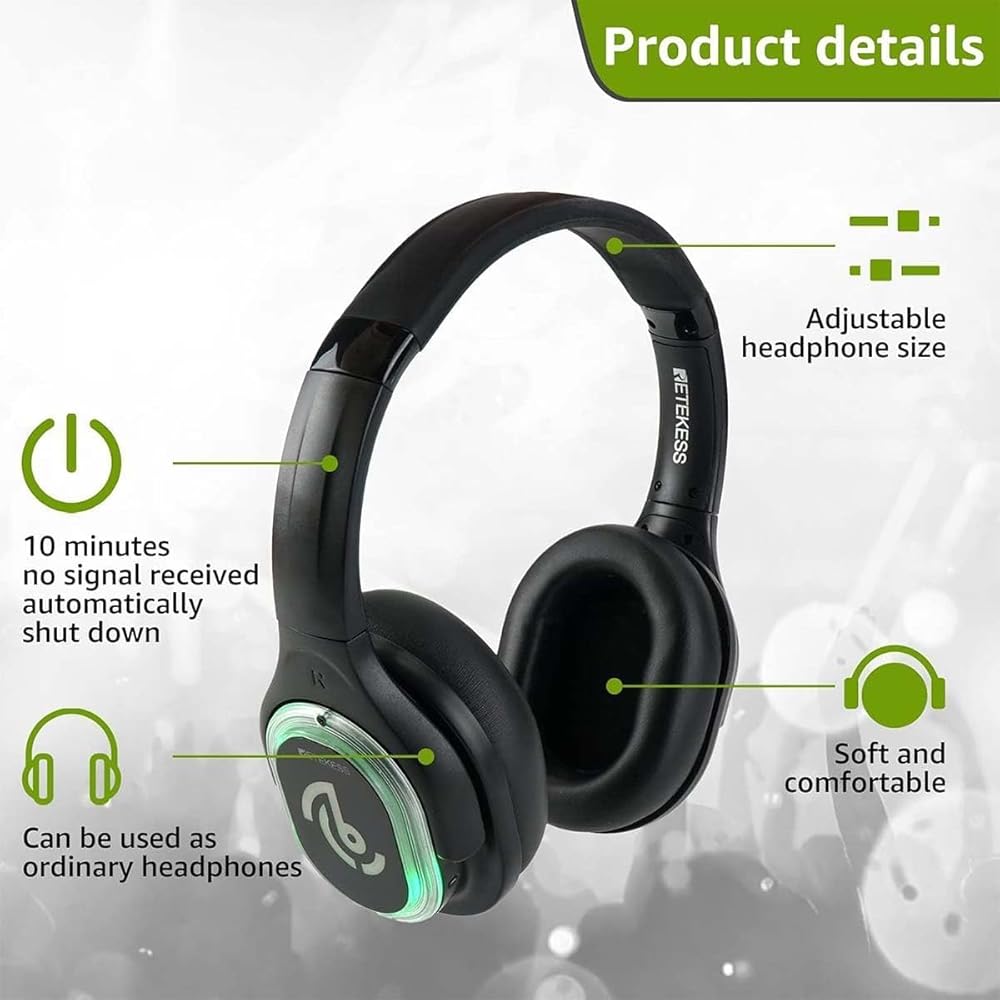 Comfortable headphones; the silent disco headsets provide excellent long-use comfort and passive noise canceling; can be retracted and rotated 90 degrees