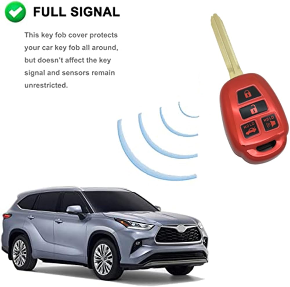 FITMENT - This TPU cover case bag holder jacket protector is compatible with Toyota Camry SE LE Avalon Corolla RAV4 Venza Highlander Sequoia 4 buttons smart key fob. It is compatible with Part Number:HYQ12BDM HYQ12BEL 89070-0R100 89070-06421. Please refer to the key in the SECOND picture before you order it.
