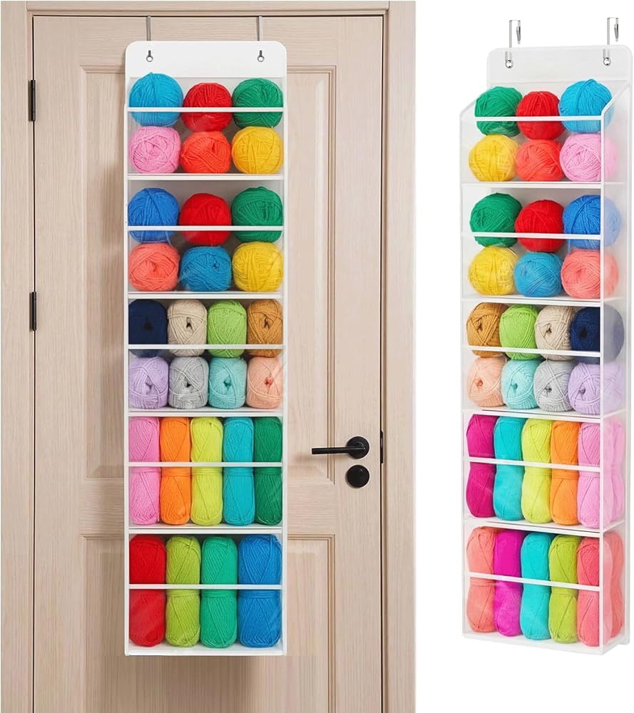 【Multiple Usage】The hanging yarn holder not only can store a large number of balls of wool and other knitting accessories, but also can be used as back door organizer to store any other items such as hats, towels, snack pantry foods ect. Take the clutter out of your home!