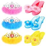 Princess dress up gift set: The combination of 3 pairs of princess dress up shoes and 3 crowns allows girls to add fun to their play by choosing to match them to different occasions, moods or outfits. Also, the set is perfect for playing with friends or sisters for added interaction.