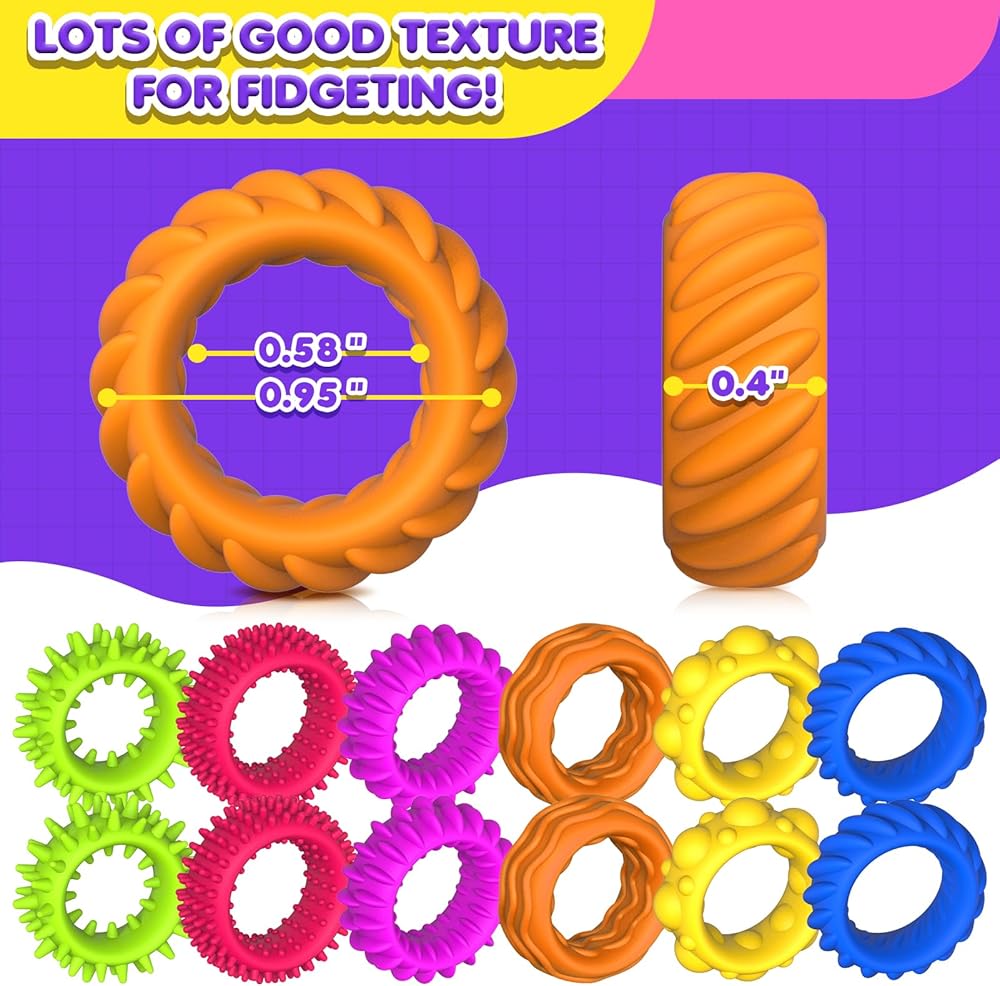 FIDGET TOYS FOR KIDS STRESS: Looking for fidget items for hands/fingers? Putting these small sensory fidgets toys into fingers to get a great sensory feeling. These soft fidget ring toys are good toys to avoid picking fingers and keep hands busy. The perfect textured fidget addition for kids with autism to control most nervous habits