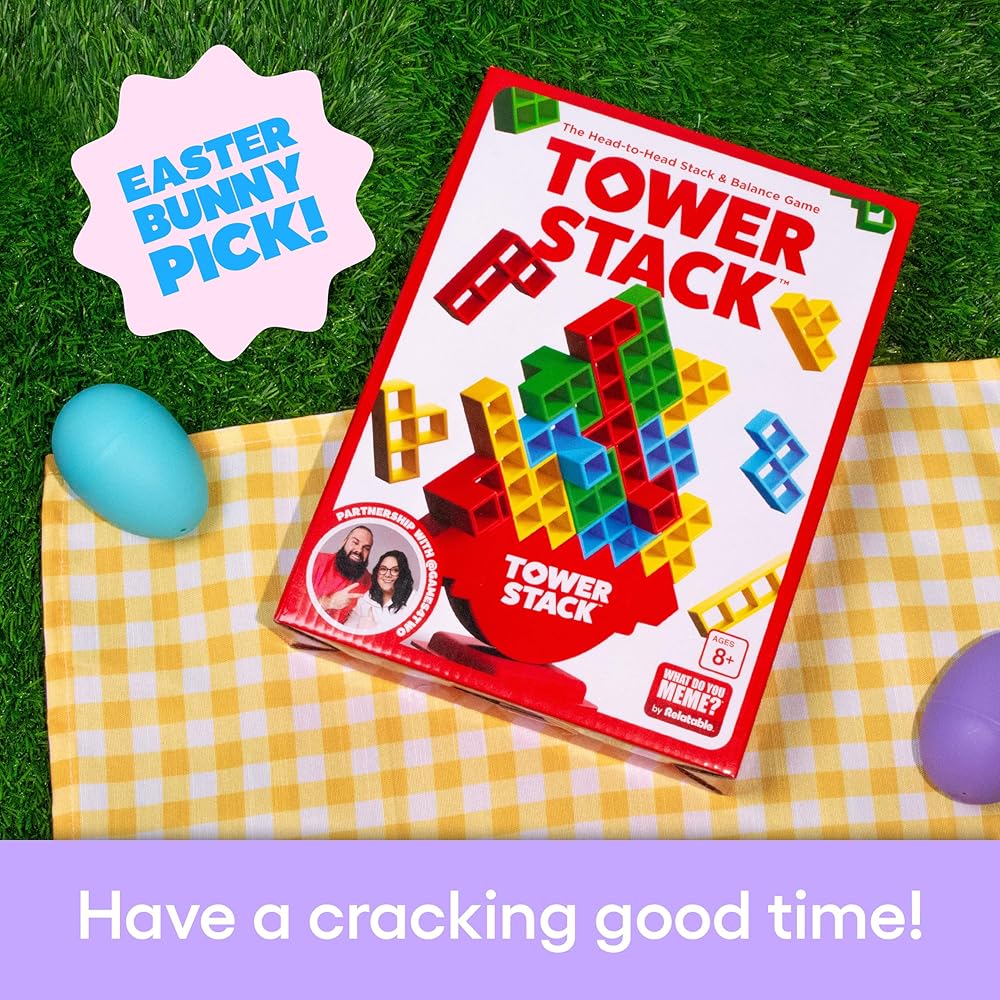 Ready. Set. Stack! Brought to you by Relatable and the TikTok famous gamer couple @Games4Two, Tower Stack is a head to head stacking challenge face-off! Take turns adding bricks to the rocking base — but be careful! As the stack piles up, so does the suspense! If the tower topples on your turn, you lose. It's easy to play, adrenaline-pumping fun — think you're up for the challenge?