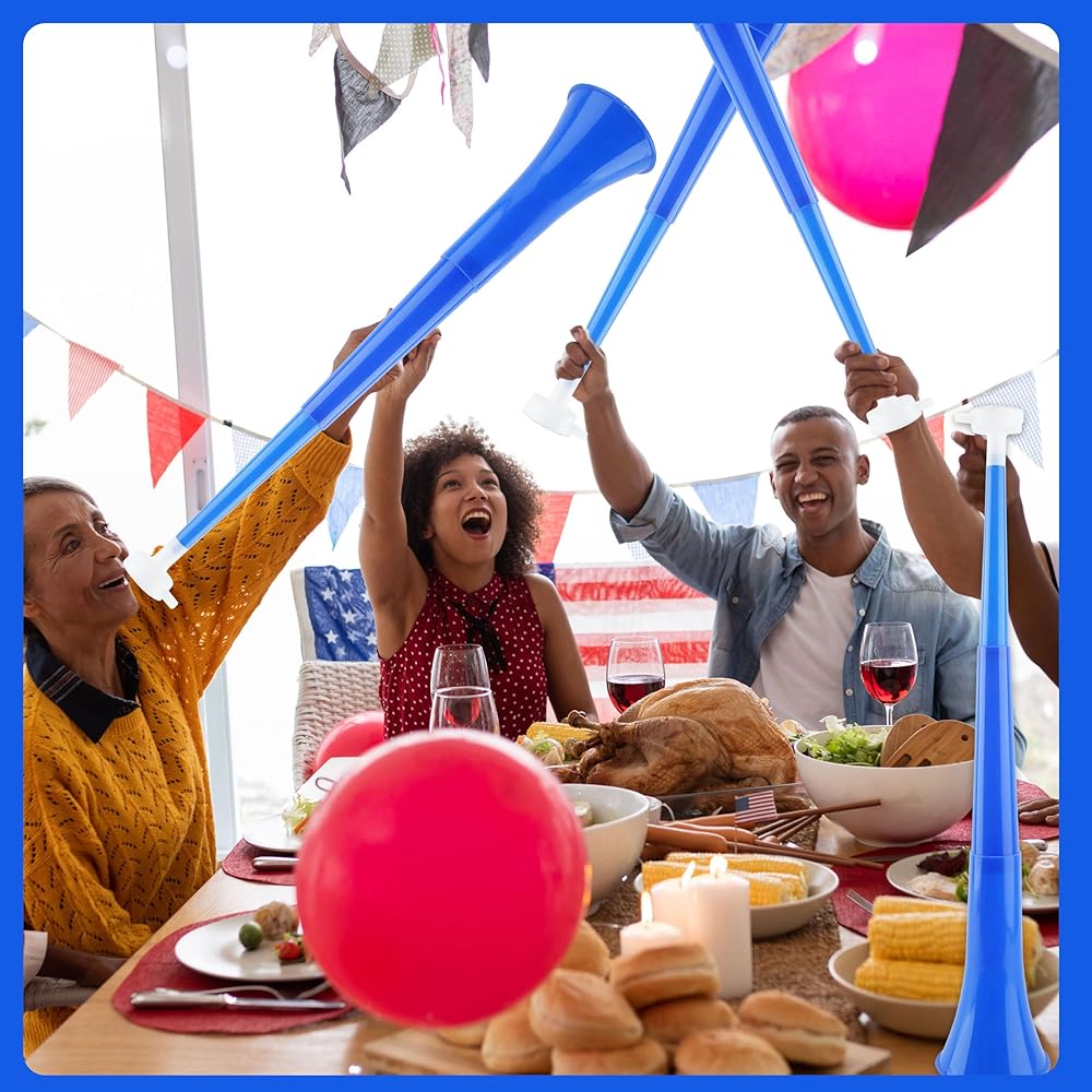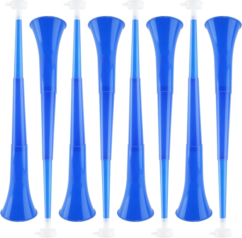 Cagemoga 8 Pack 24 Inch Collapsible Vuvuzela Stadium Horn Plastic Cheering Blow Horn Trumpets Noisemakers for School Sports Events Sports Party Supplies