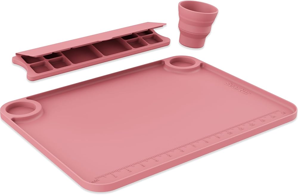 【Smart Design Features】: Designed with versatility in mind, the detachable painting well and cup on the silicone artist mat offer expanded functionality beyond painting, catering to a wide range of DIY projects. Additionally, the imperial measurement ruler aids in precise project measurements. Enhance your crafting experience with this innovative mat.