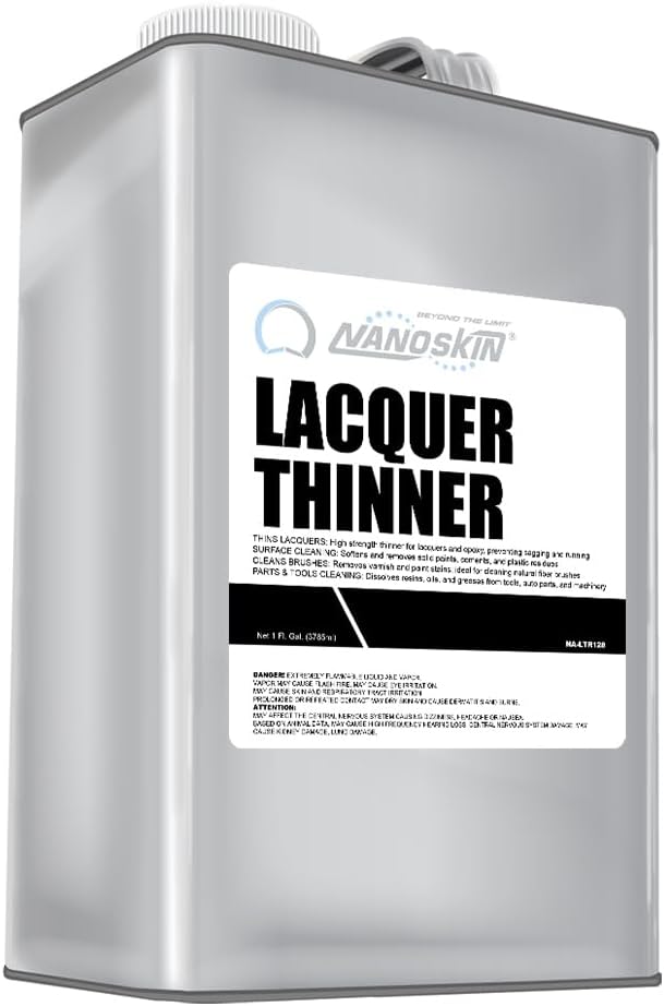 Nanoskin Lacquer Thinner is the perfect solution for professional painters and DIY enthusiasts. This high-strength solvent is specially formulated for thinning lacquer, lacquer type products, and a wide range of epoxy finishes. The medium-dry lacquer thinner will help you achieve the perfect viscosity for your projects and prevent sagging and running in vertical surfaces. Not only does it help thin lacquers, but it can also be used for surface cleaning. The powerful formula will soften and remove stubborn, solidified paints from smooth surfaces. Additionally, it can be used to eliminate residue from cements and plastics. For those who enjoy painting, Nanoskin Lacquer Thinner is a great solution for cleaning brushes as well. Its superior paint-removing capabilities make it a great choice for cleaning paint brushes. However, it's important to note that using a nylon brush is not recommended, as the potent thinner may weaken the bristles. In addition to painting tools, the lacquer thinner is also great for cleaning parts and equipment. Whether you're working on auto parts, machinery, or engine parts, these items often come into contact with resins, oils, and greases that can be difficult to remove. The chemicals in Nanoskin Lacquer Thinner will effectively dissolve most resins and stains, making cleaning a breeze. In conclusion, Nanoskin Lacquer Thinner is a versatile and effective solution for those who want to achieve professional results. Whether you're thinning lacquers, cleaning surfaces, or simply looking for a great cleaner for your tools and equipment, Nanoskin Lacquer Thinner is the perfect choice. Order yours today and start enjoying the benefits of this high-strength solvent!