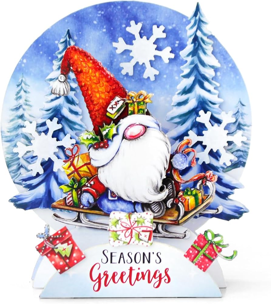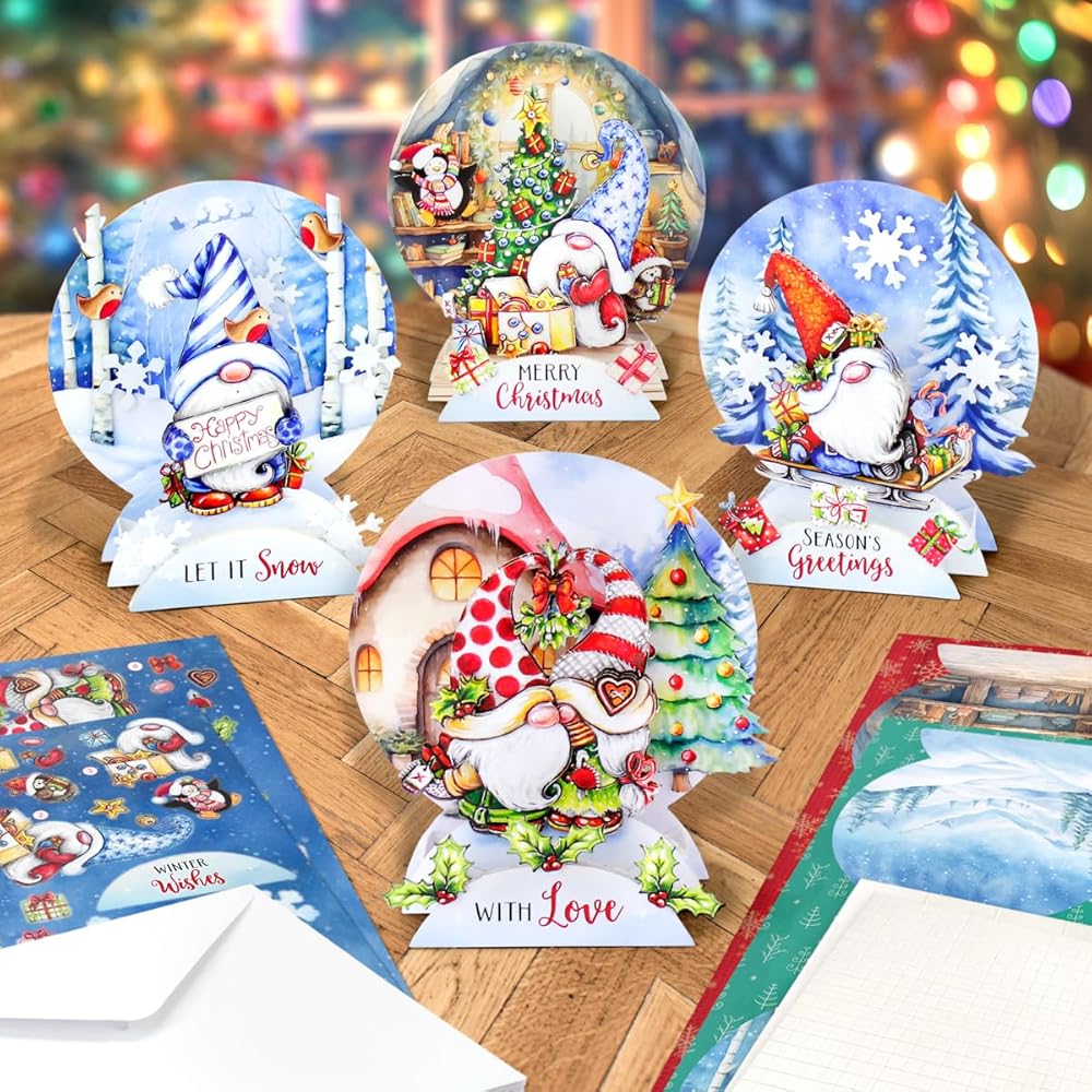 Katy Sue Christmas Gnomes Die Cut Pop Up Card Making Kit for Adults. Makes 12 Cards & Contains Gnome Die Cut Decoupage Paper Sheets, Supports, Envelopes, & Foam Pads For Christmas Card Making Supplies