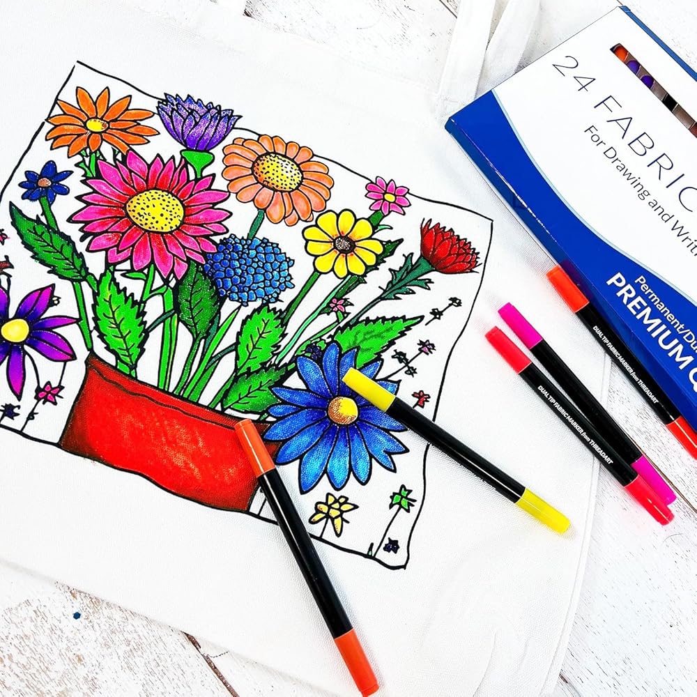 ✅ Color You Own Tote Bag Kit with Fabric Markers! Decorate your own bag with set includes a preprinted white tote bag and our 24 color fabric marker set in a packaged in giftable packaging.