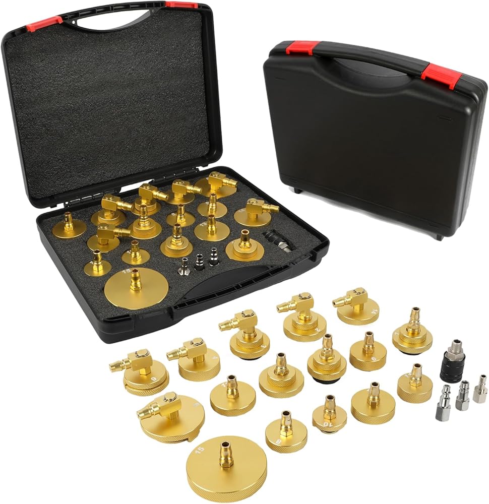 【Friendly design】This master cylinder bleeder kit includes 12pcs different size adapters, 1pc japanese quick connector. This Brake Master Cylinder Bleeder Kit comes with a carrying case for easy transportation and organization. the master cylinder bleeder kit has the code of each adapter printed inside,you can easily identify and organize them.