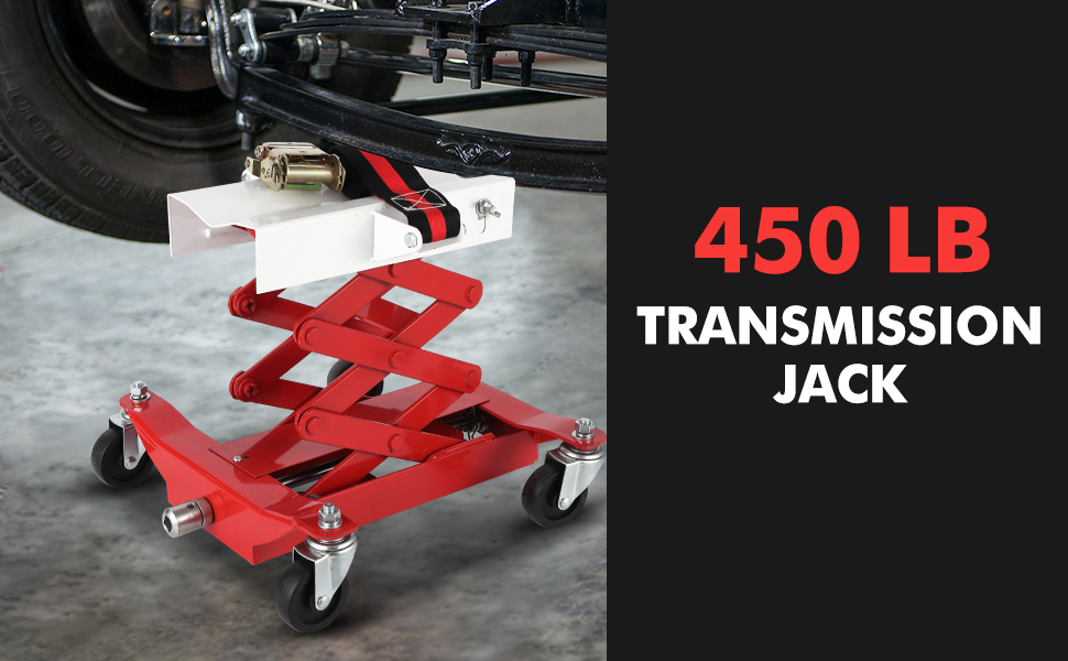【High Weight Capacity】Our 450 Lbs Auto Repair Lifting Jack is robust enough to handle a wide range of transmissions, providing peace of mind during heavy lifting operations.