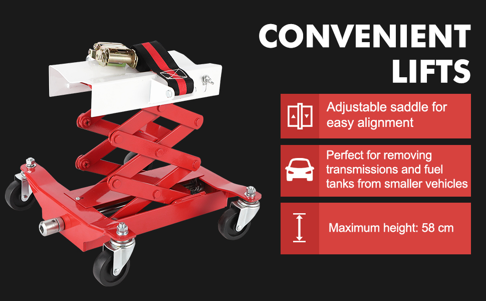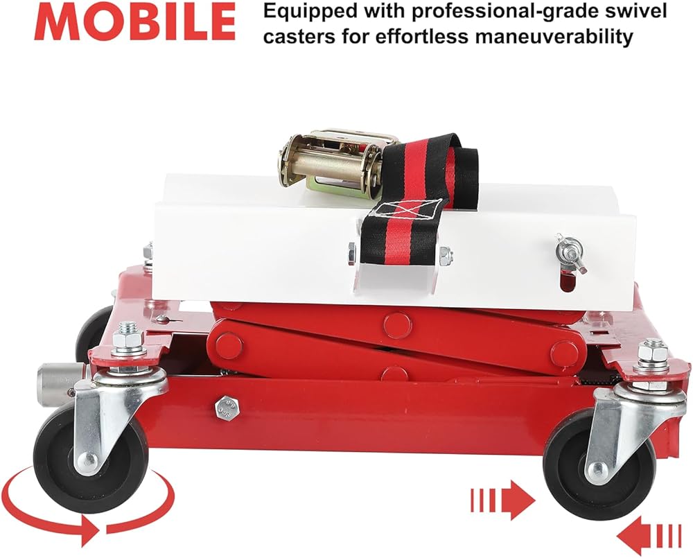 【Adjustable Height Capabilities】Featuring an Adjustable Transmission Jack design, it allows for precise height adjustments, adjustable 25-inch height ensuring a perfect fit and alignment during installation or removal of transmissions.