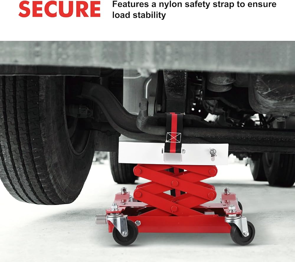 【Heavy-Duty Design】Built with high-quality materials, this Heavy-Duty Transmission Jack ensures durability and long-lasting performance, making it suitable for both professional garages and home workshops.