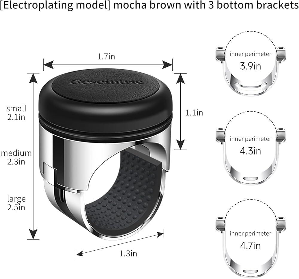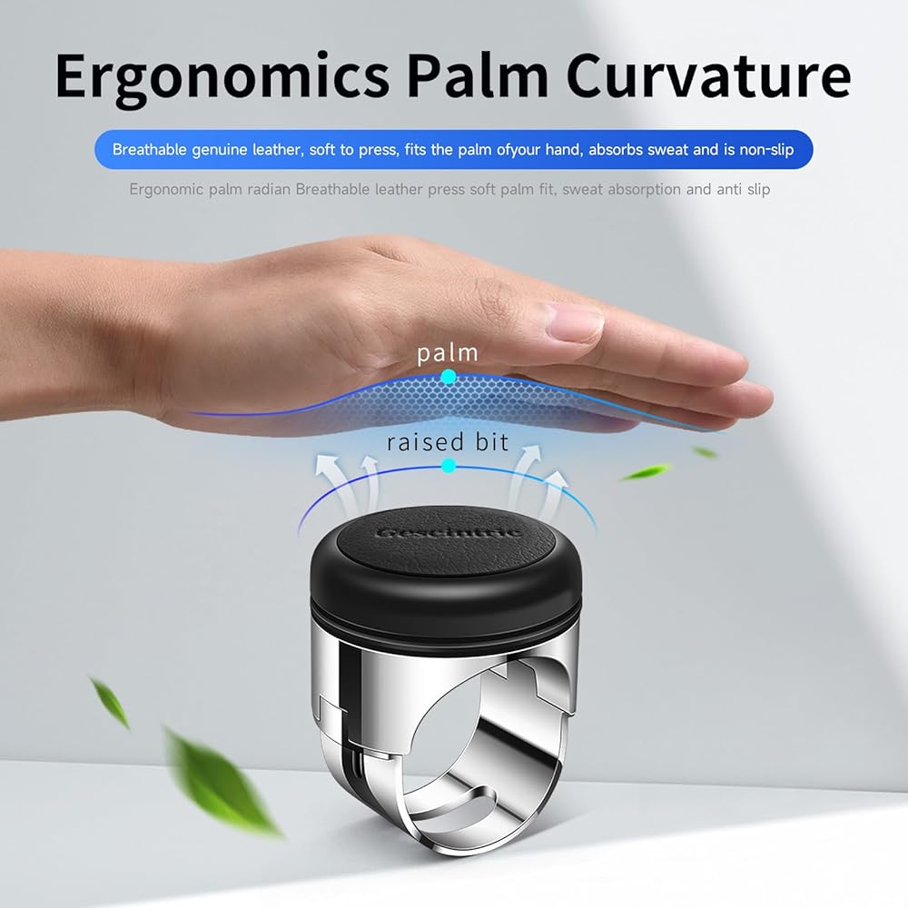 ✅ [Advanced materials] -Gescintric This steering wheel rotator is made of zinc alloy and head layer of leather-ergonomic leather shell, breathable, sweat-absorbing, anti-skid, comfortable! Works very well, and is very solid and rotates smoothly.