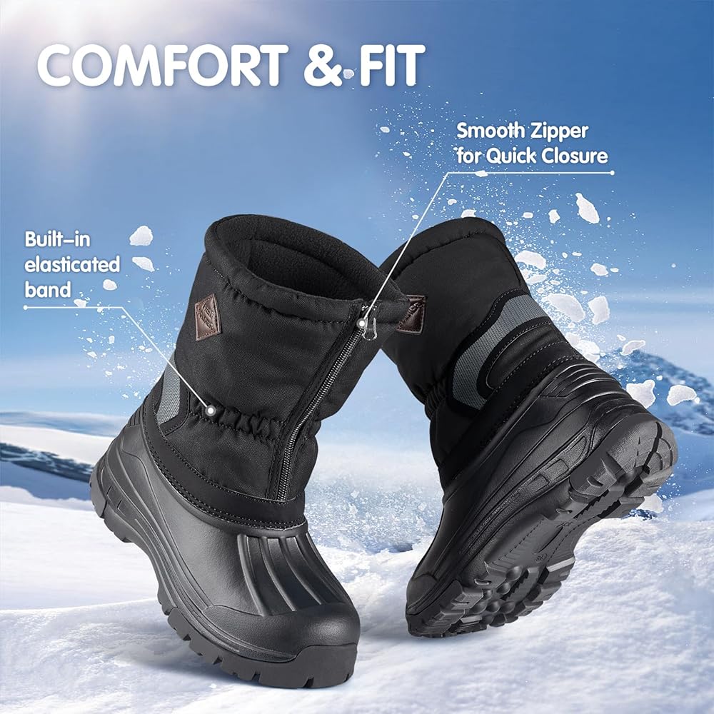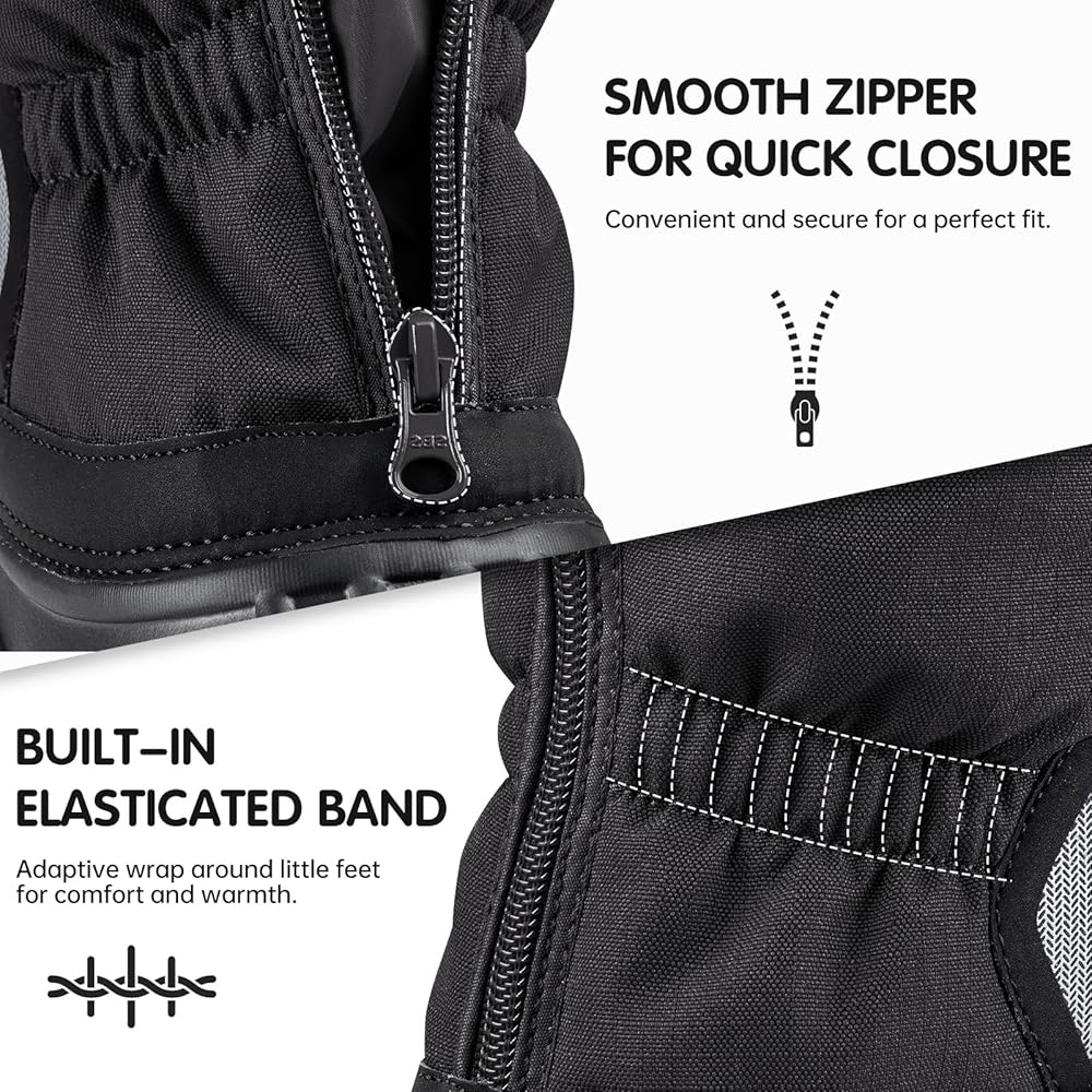 ZIPPER CLOSES QUICKLY:Boys' snow boots feature a quick zipper design, easy to open and close effortlessly. The tubular waist of the snow boots uses built-in elastic bands, fitting to provide warmth and effectively prevent rain, snow, and dust from seeping in, ensuring every step is comfortable and cozy for child to enjoy a carefree wearing experience in the snow