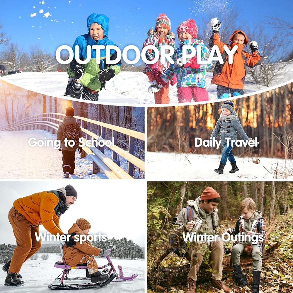 APPLICABLE OCCASIONS:Our snow boots are anti-slip and wear-resistant, easily handling various outdoor challenges,such as hiking,walking,running; Warm and comfortable, allowing children to run freely even in cold weather. Whether for daily school activities or snow adventures, a pair of children's snow boots will accompany them to explore endless winter fun