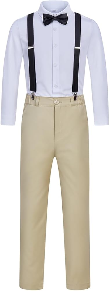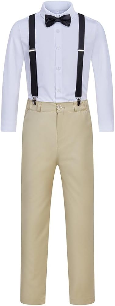 Our kids tuxedo suits for boys are designed to provide a comfortable and stylish fit for young boys of all ages. The Boys Formal Suit includes everything your little one needs to look dapper and put-together, including a blazer, pants, vest, dress shirts, a bow tie, and a suspenders with adjustable stretch length.