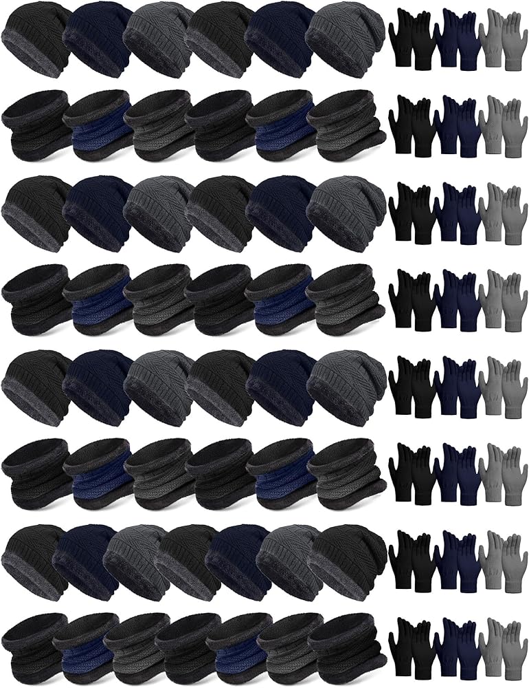 All In One Set: You will receive 25 sets of warm winter accessories for kids, including 25 pcs winter beanie, 25 pcs scarf and 25 pairs of knitted gloves, in a variety of colours to suit your child's everyday needs, ideal for sharing, donations, charities, schools, events or gifts