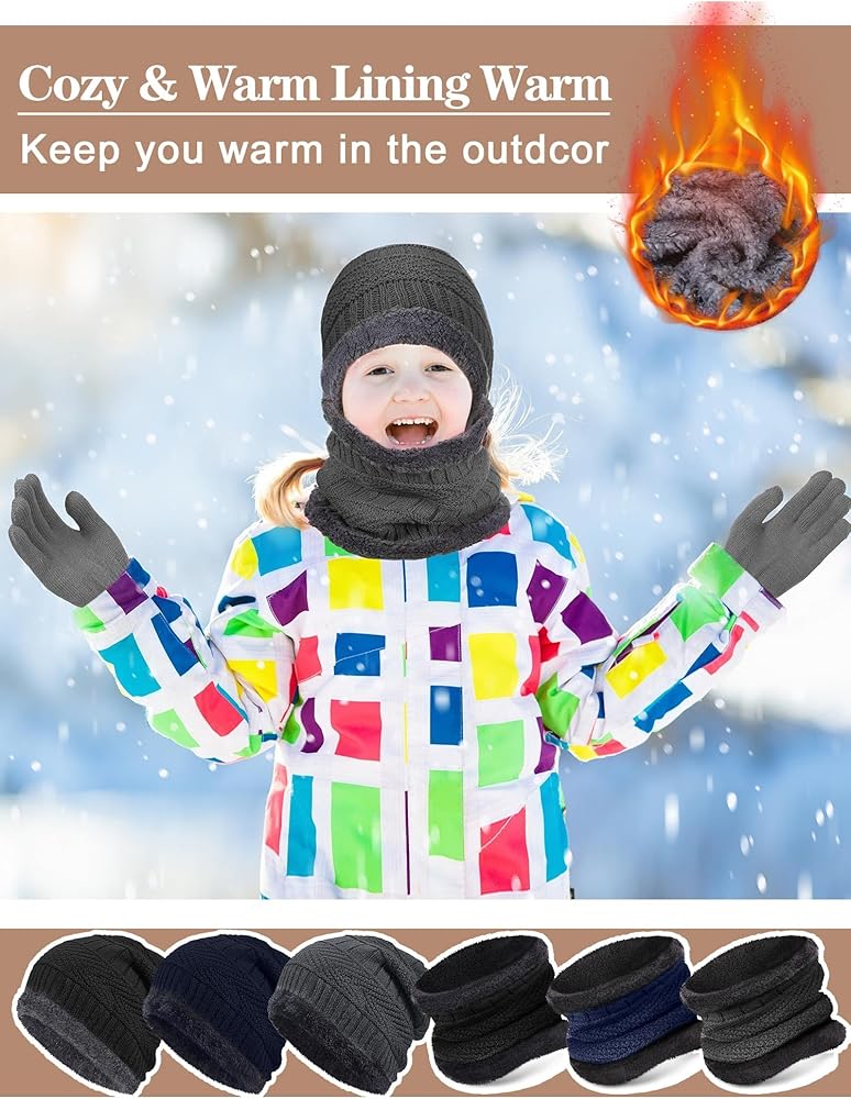 Versatile Use: Our toddler winter hat glove scarf sets are warm and cosy enough for different winter outdoor activities such as going to school, exercising, jogging, hiking, skiing, snowboarding, etc., bringing comfort and long-lasting warmth to your child