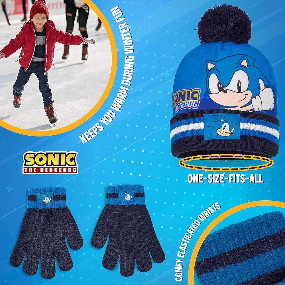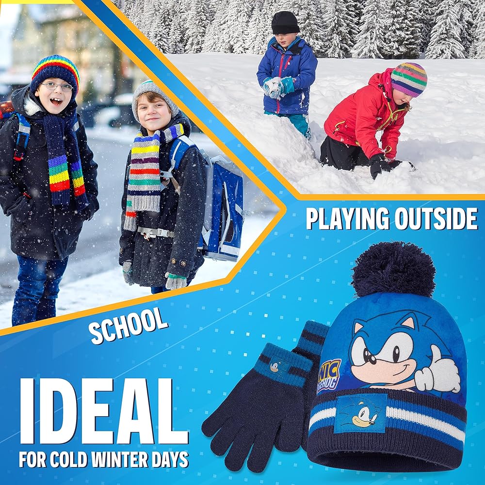 Sonic winter accessories set for kids with the option of a scarf, hat and gloves set or a hat and gloves set