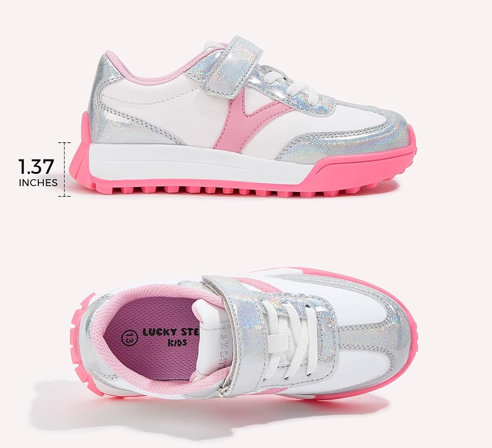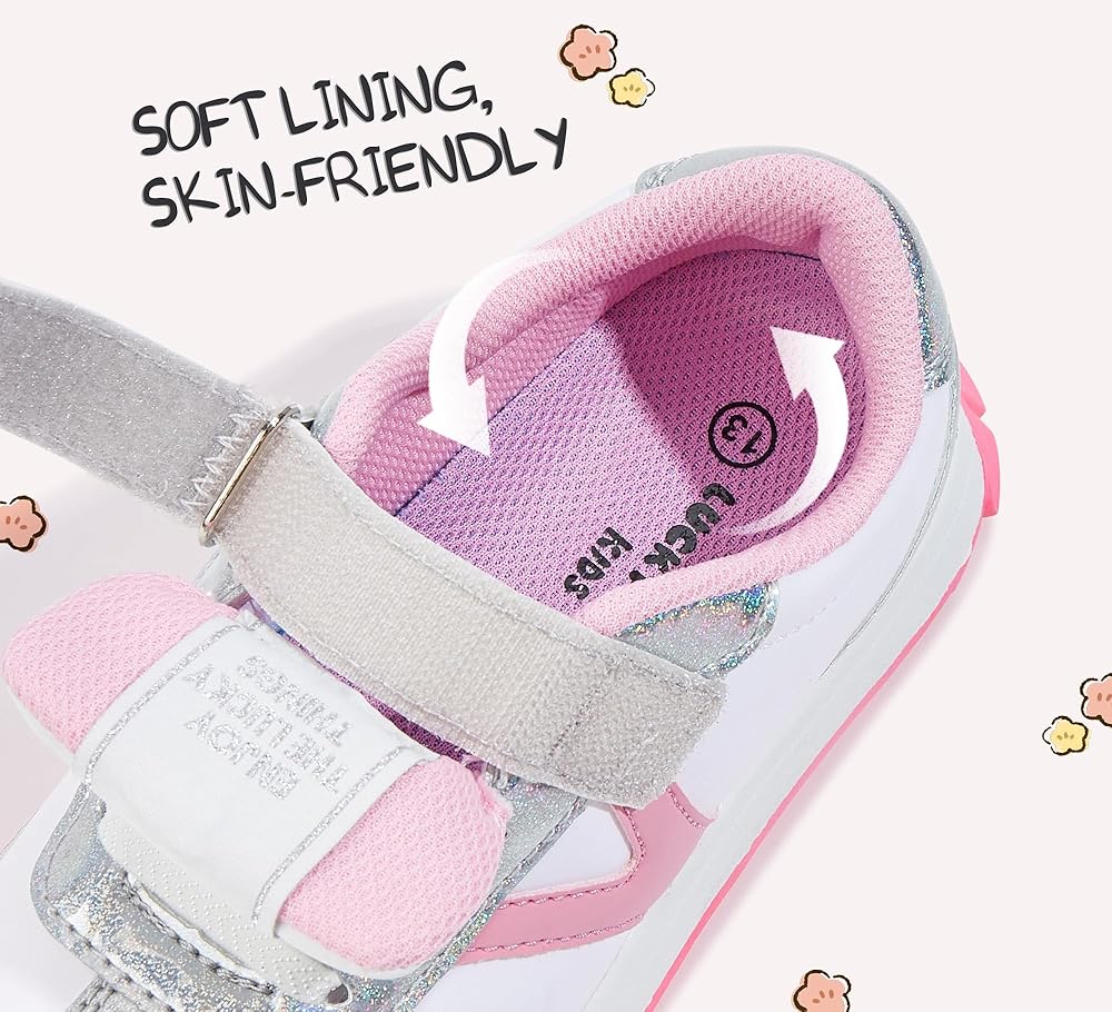 【VIBRANT COLORS】: These unisex-child sneakers with a soft faux leather upper in vibrant colors, adding a trendy touch and showcasing your child's unique style.