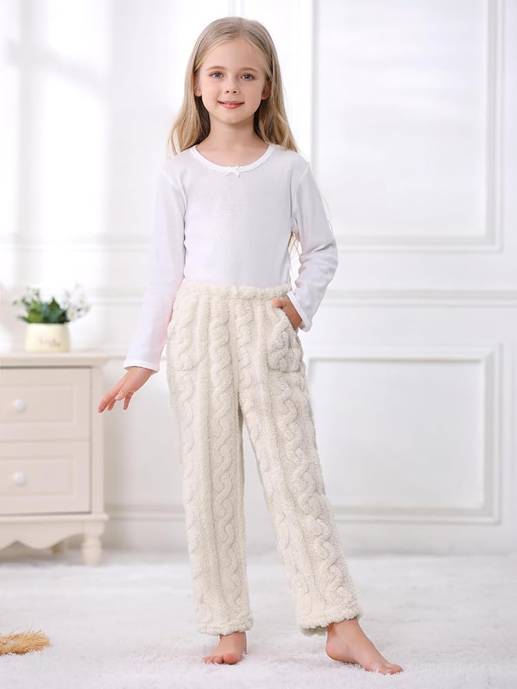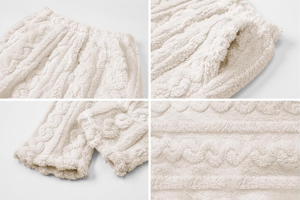 【Fabric】: These cozy pajama pants are crafted from a plush, fuzzy fabric that offers a warm and comfortable feel.