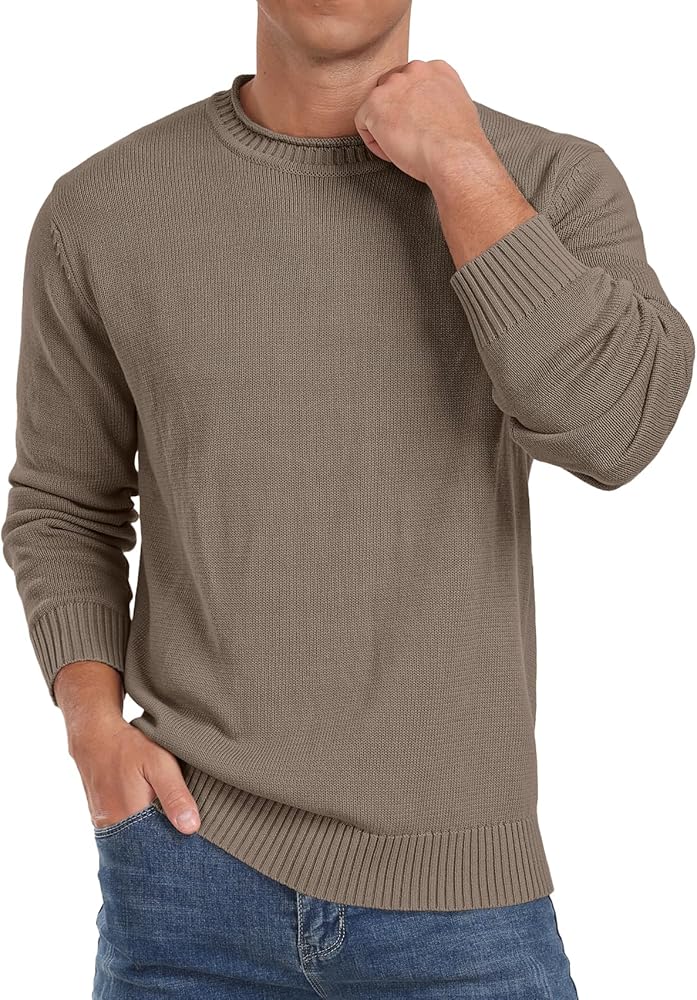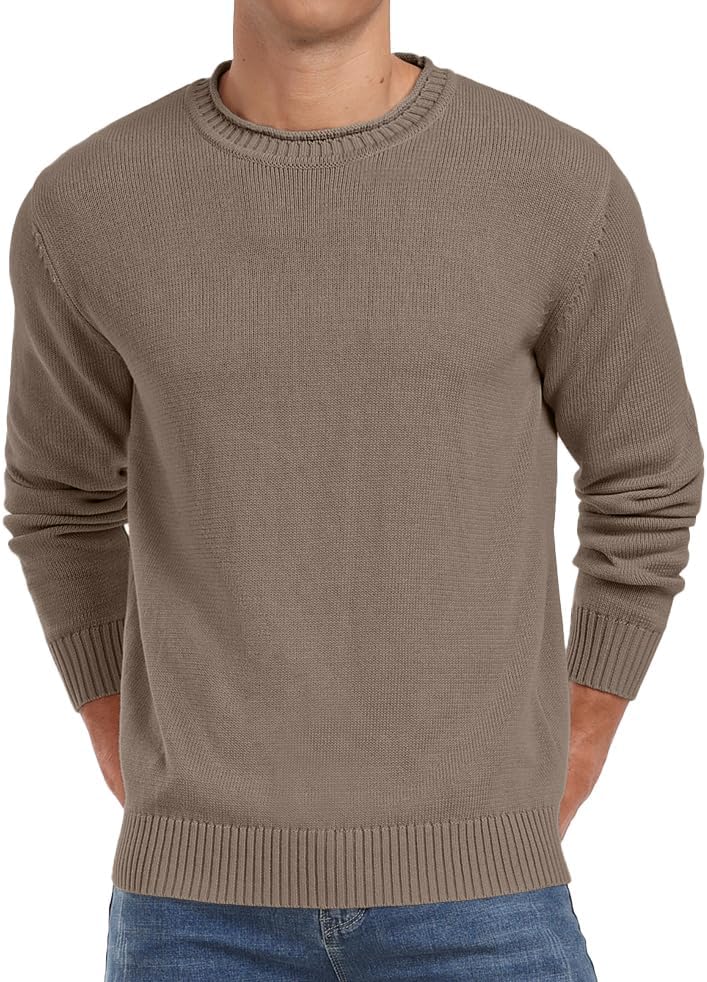 【Cotton Fabric】Men's crew neck sweater is crafted from 100% cotton yarn, offering a gentle touch and natural stretch. It provides warmth without the bulk, ensuring a comfortable and cozy fit for those cooler days.