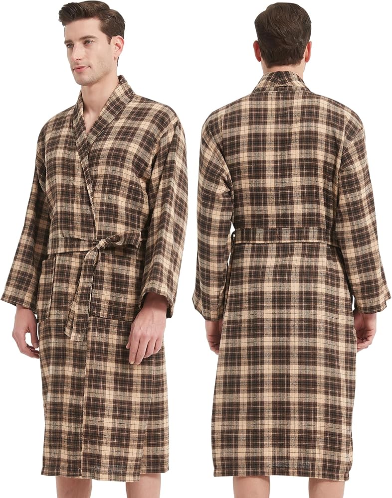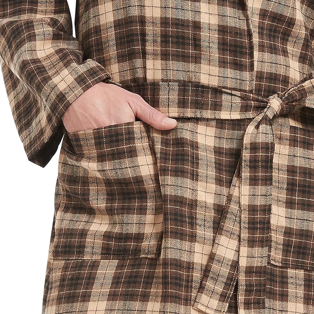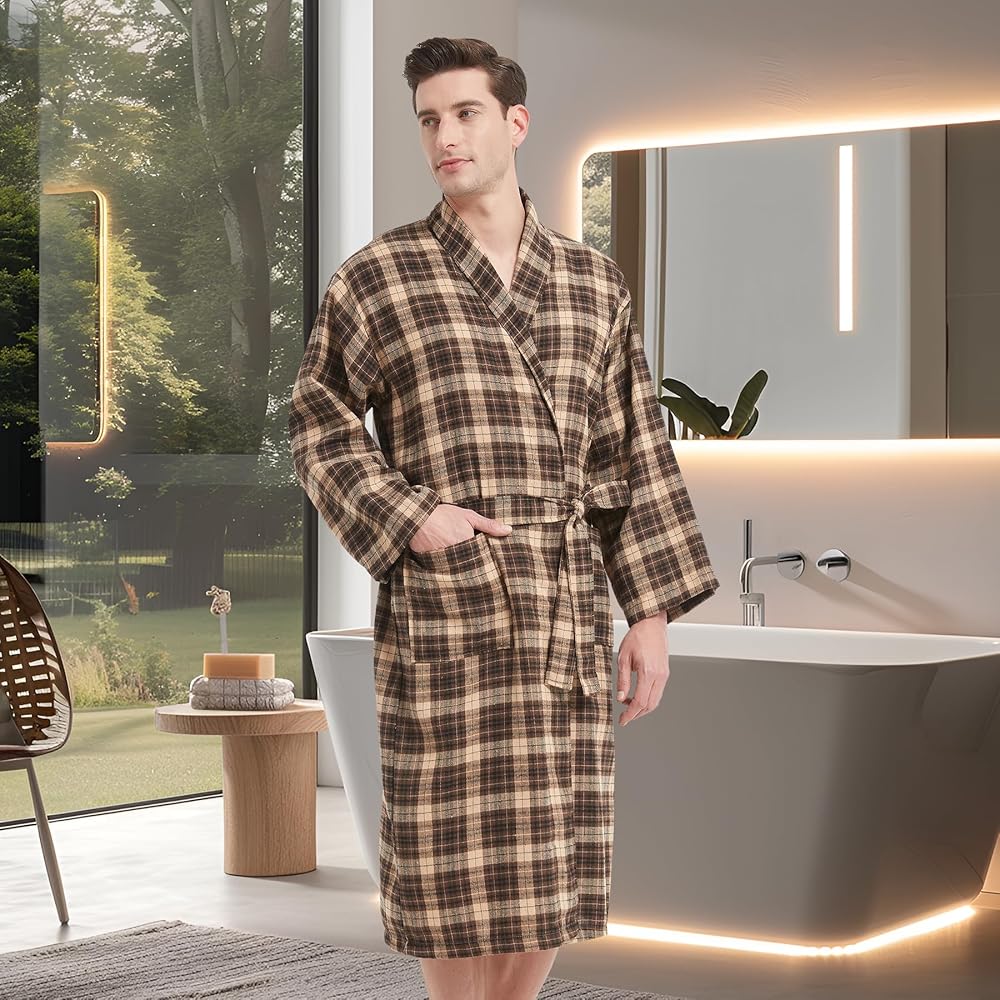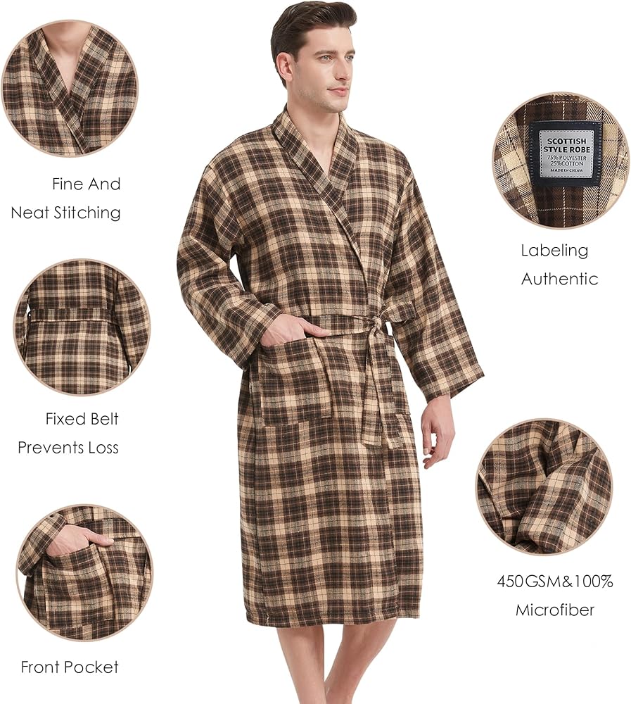 Microfiber Flannel Robe: Our mens bathrobe is made of microfiber flannel, its soft fabric is perfect for lounging and relaxing after a long day of work.A classic plaid pattern gives this men's bathrobe a unique and eye-catching look. Medium weight, not too thick or heavy, comfortable to wear all year round for lounging and sleeping.