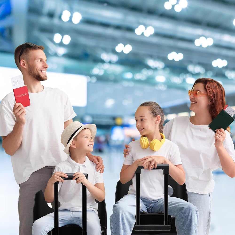 Innovative Suitcase with Seat: this special kids' suitcase features a built-in seat, allowing children to ride comfortably while traveling; Its sleek black design is ideal for family vacations, business trips, or any travel adventure, making it a good choice for parents on the go